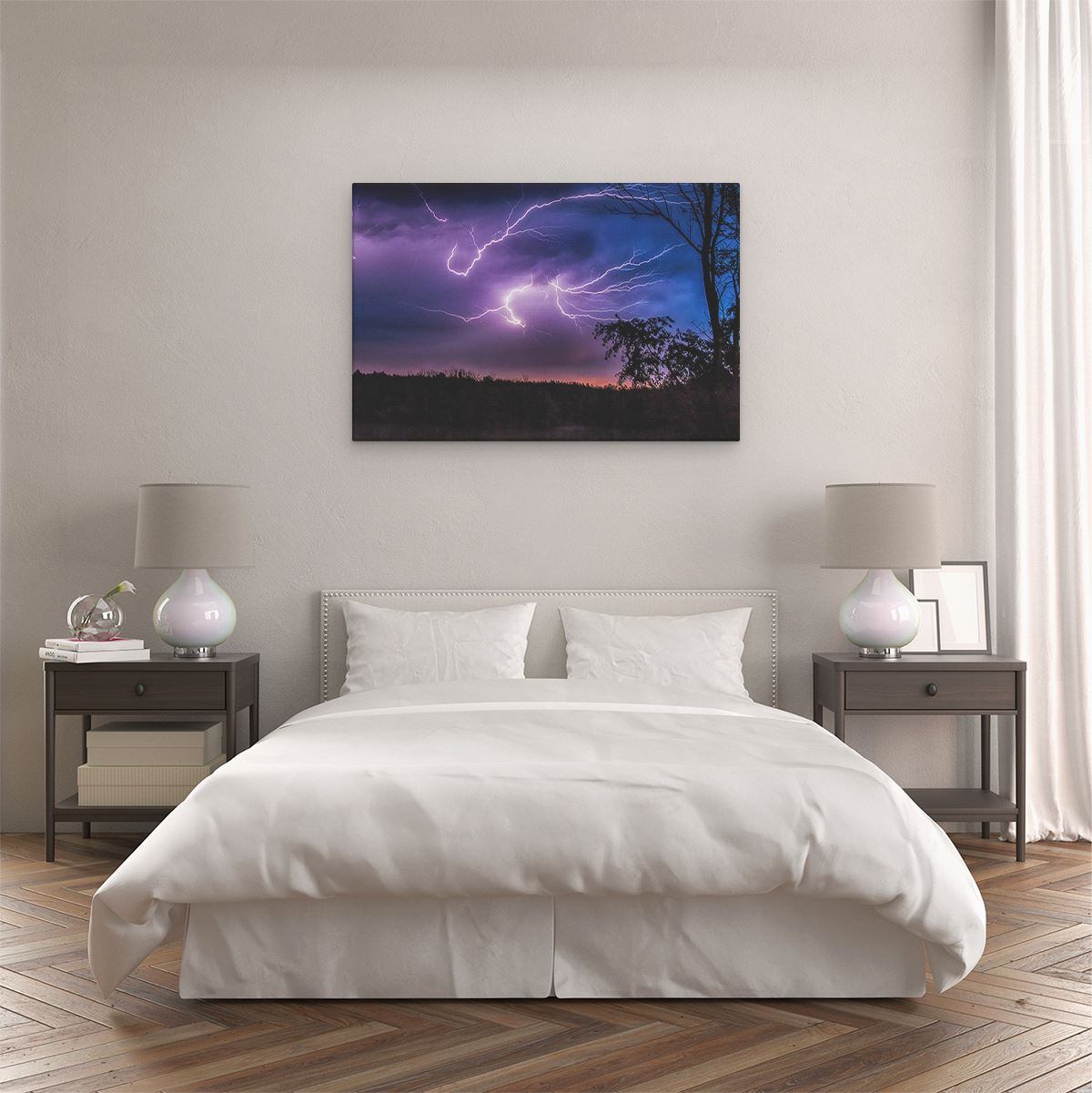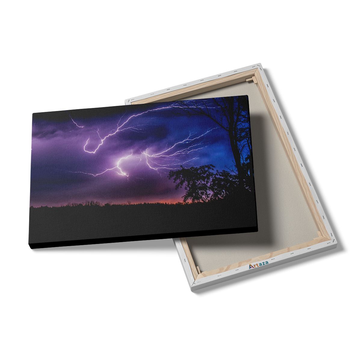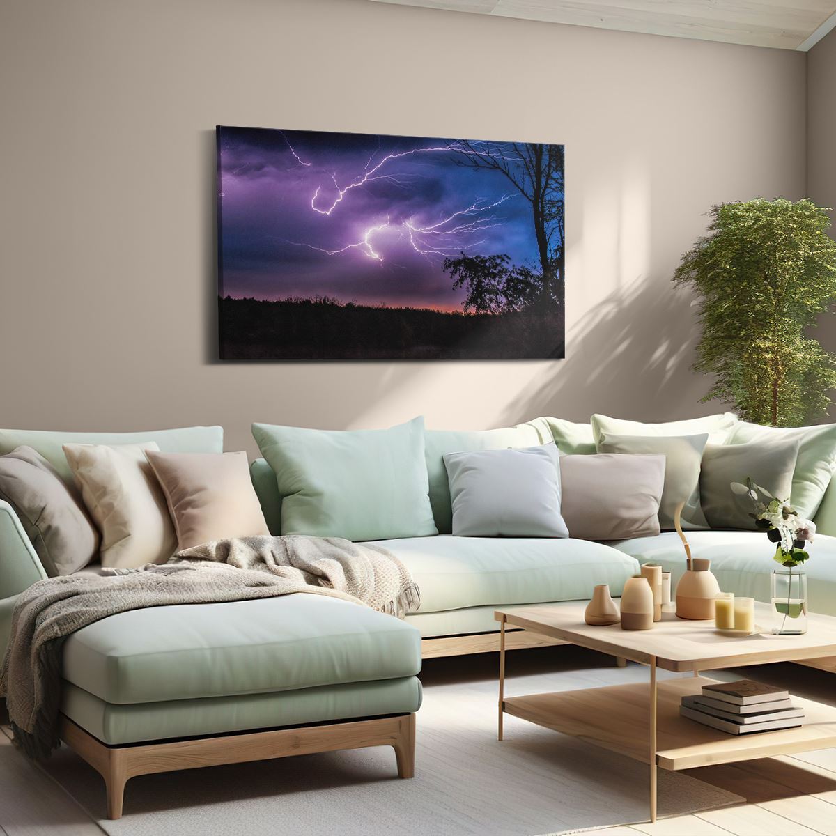 Schilderij Blikseminslagen in een Paarse Hemel - Onweer
