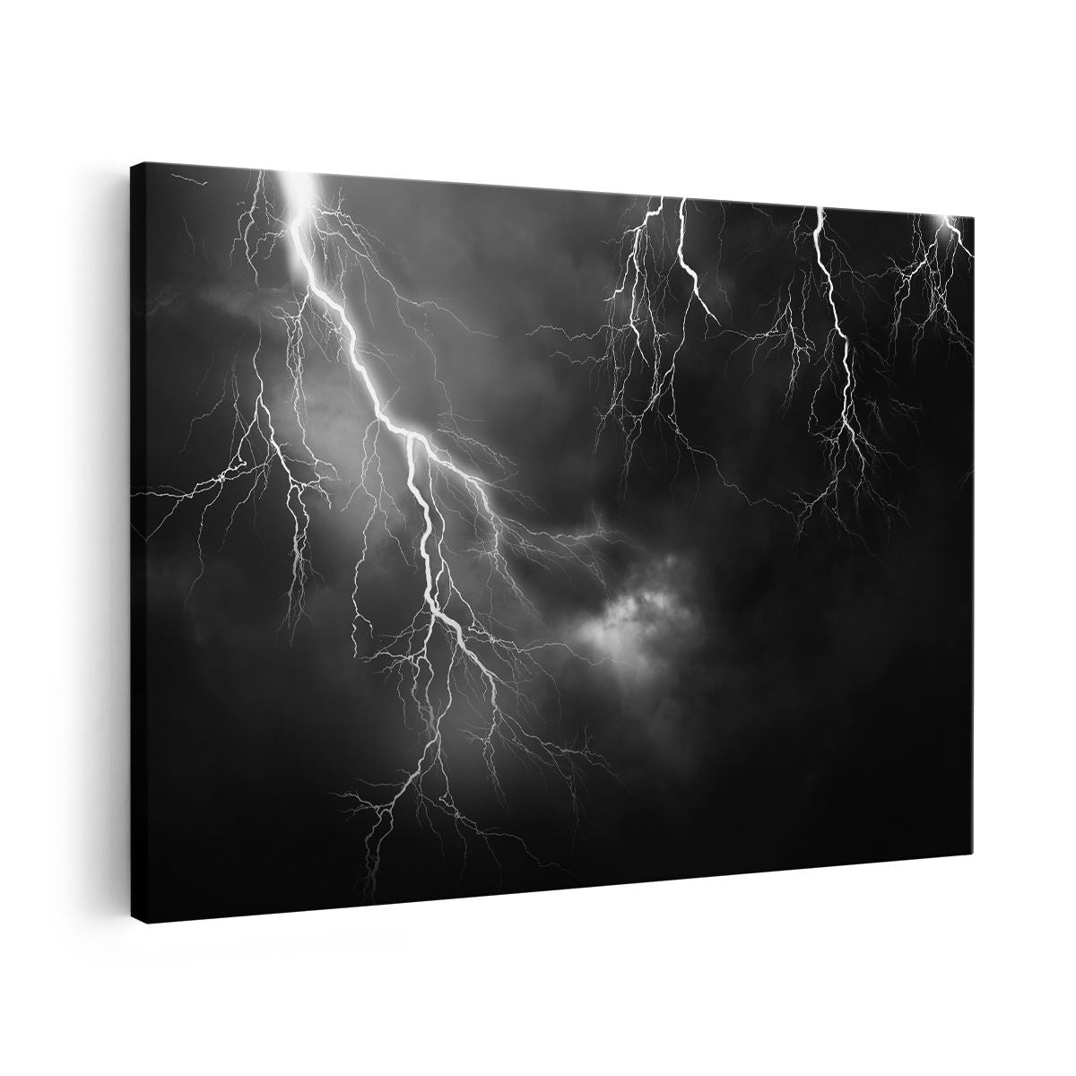 Schilderij Blikseminslagen - Onweer - Zwart Wit
