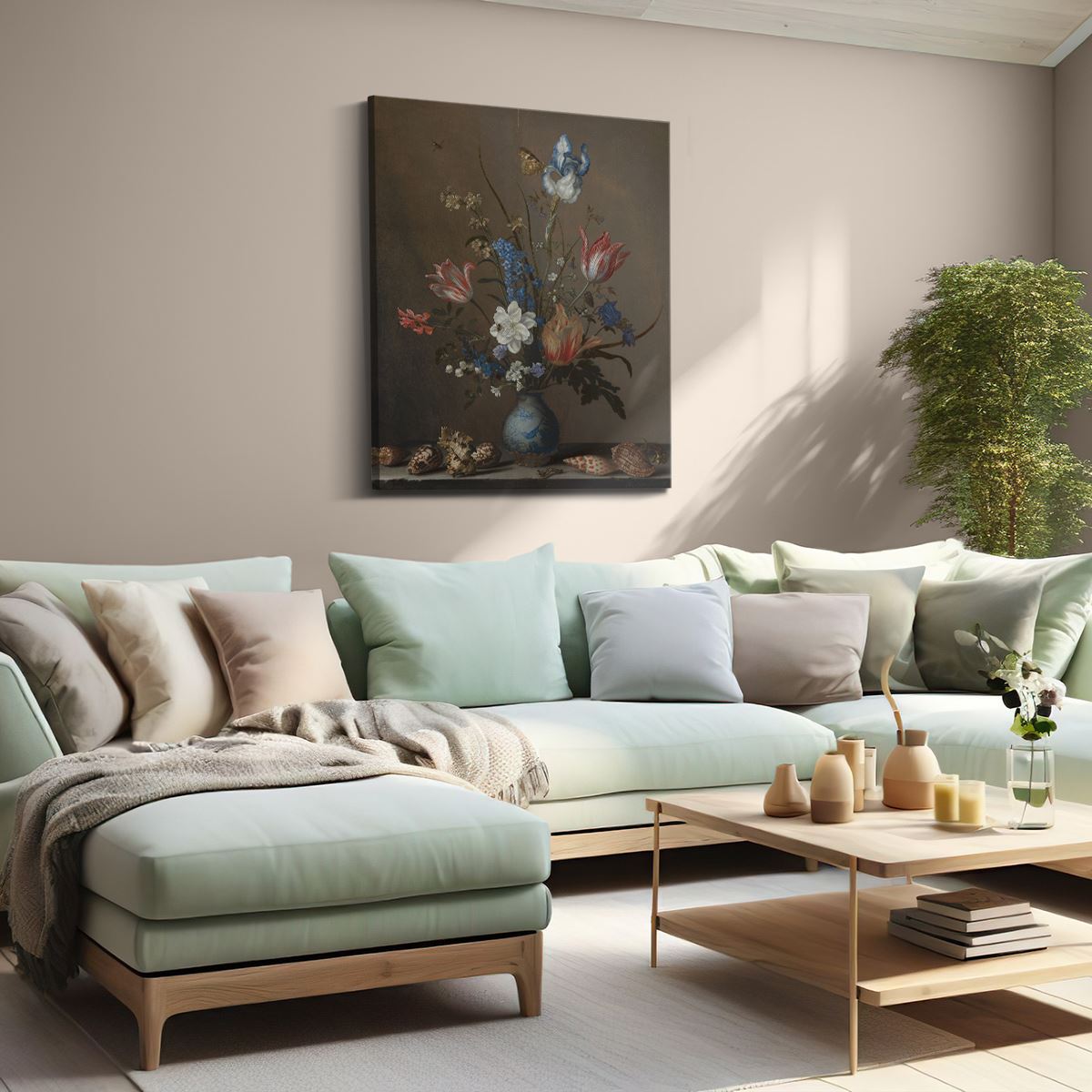Schilderij Bloemen in een Wan-Li Vaas en Schelpen - Balthasar van der Ast