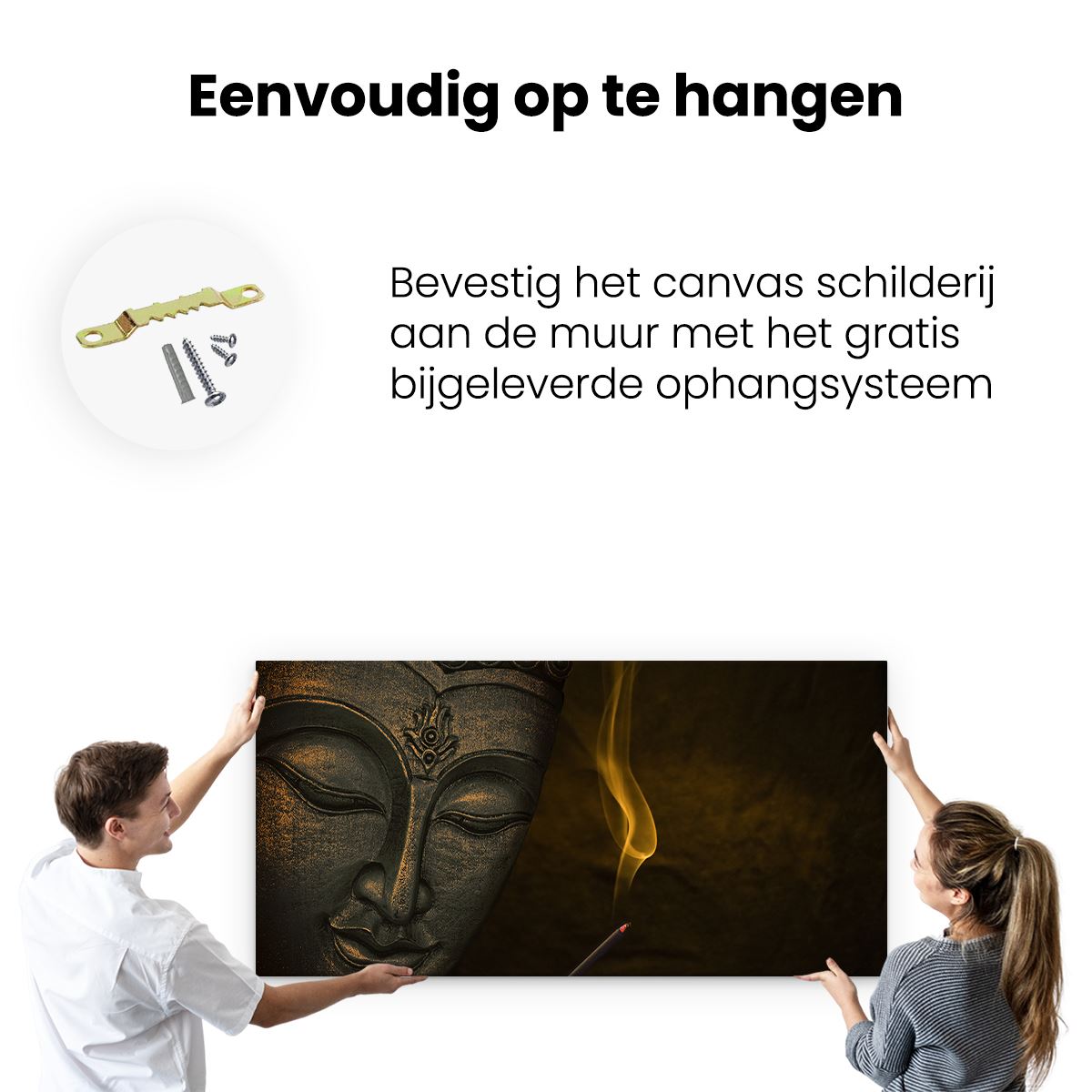 Bij aankoop ontvang je een meegeleverd ophangsysteem, zodat je op een simpele en snelle wijze het schilderij boven de bank of bed kan monteren.