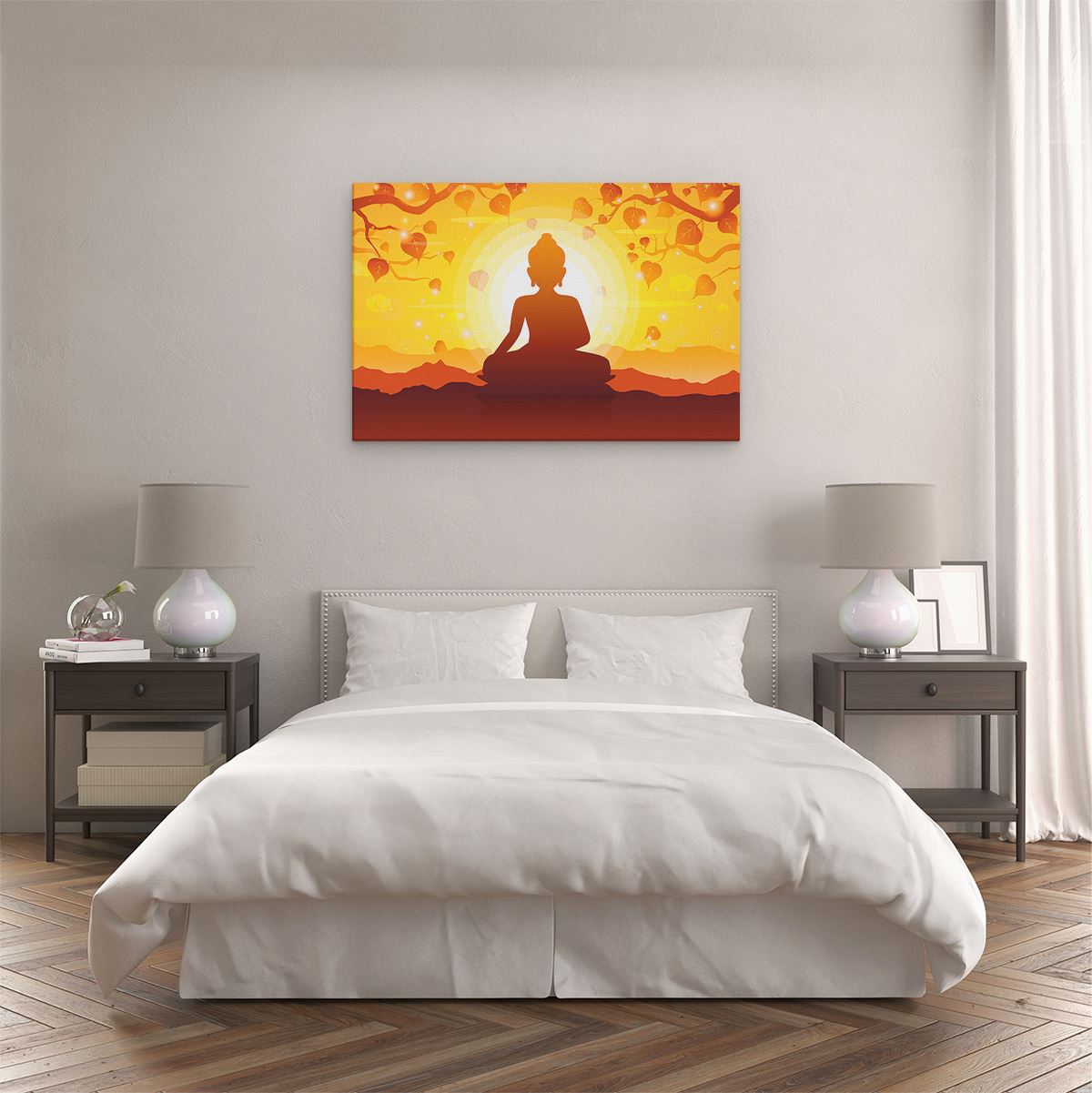 Schilderij Boeddha Beeld Onder Een Boom - Abstract