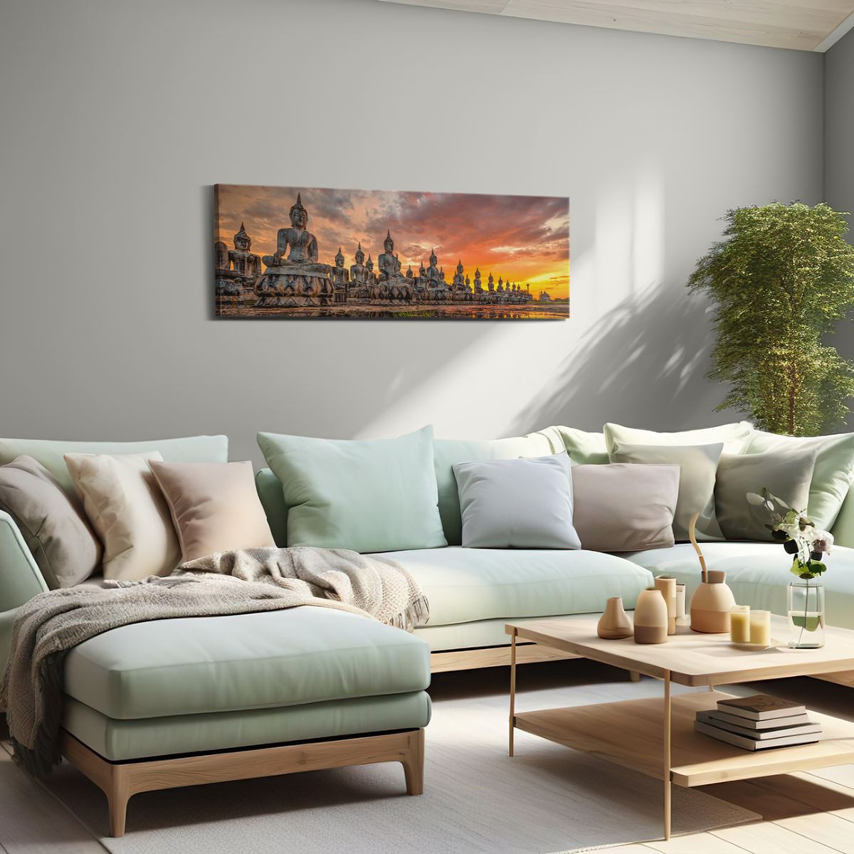 Schilderij Boeddha Beelden Tijdens Zonsondergang
