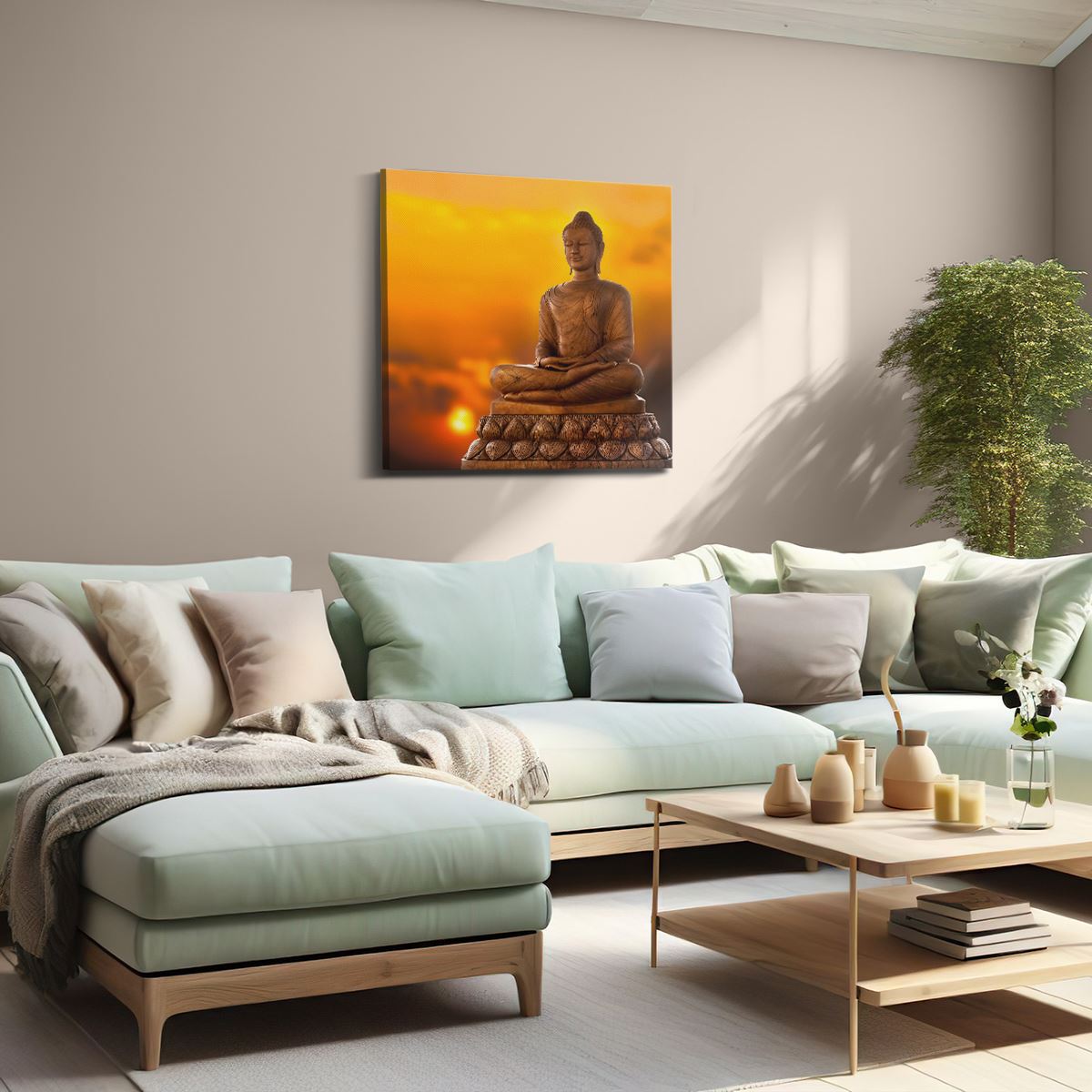 Schilderij Boeddha Standbeeld Bij Zonsondergang