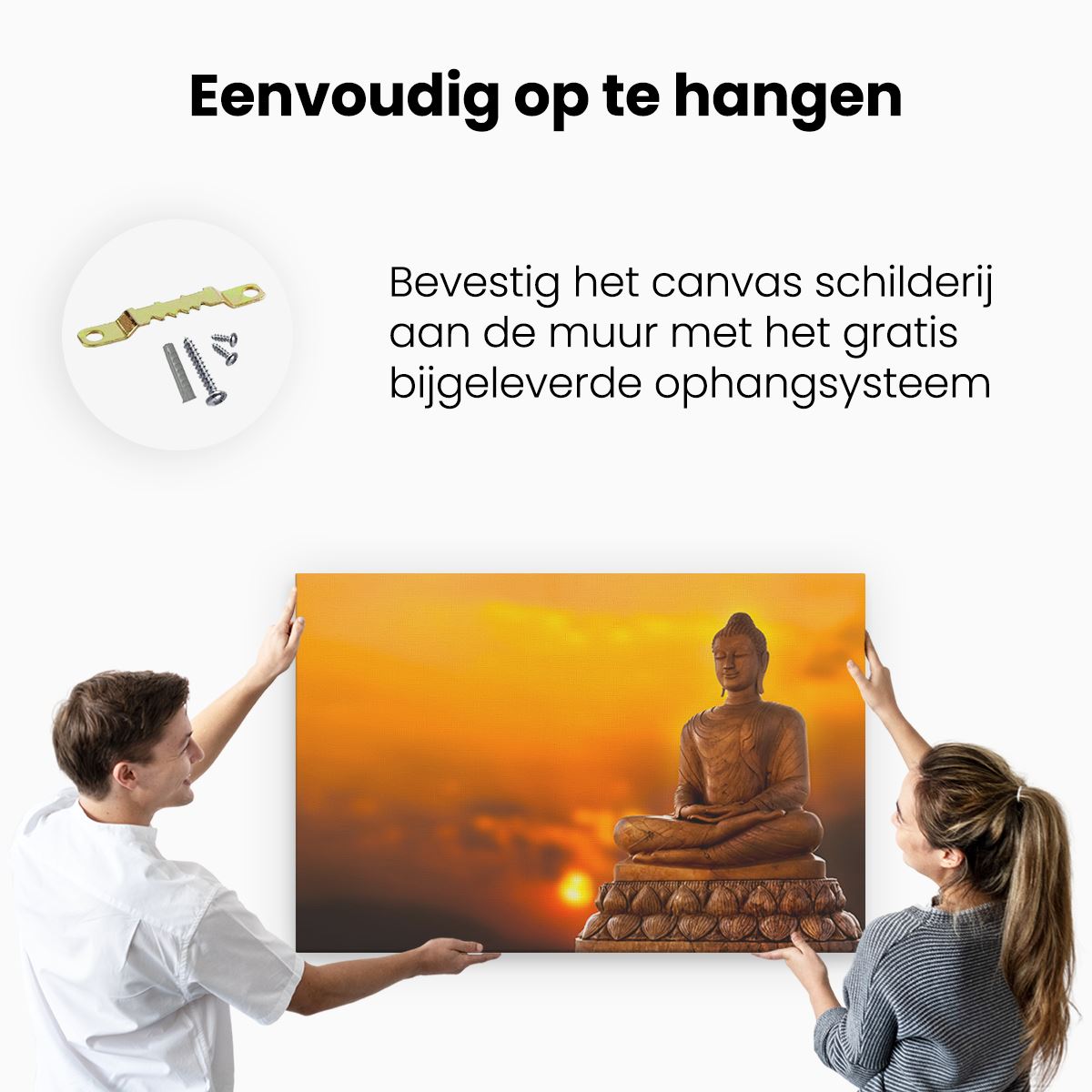 Bij aankoop ontvang je een meegeleverd ophangsysteem, zodat je op een simpele en snelle wijze het schilderij boven de bank of bed kan monteren.