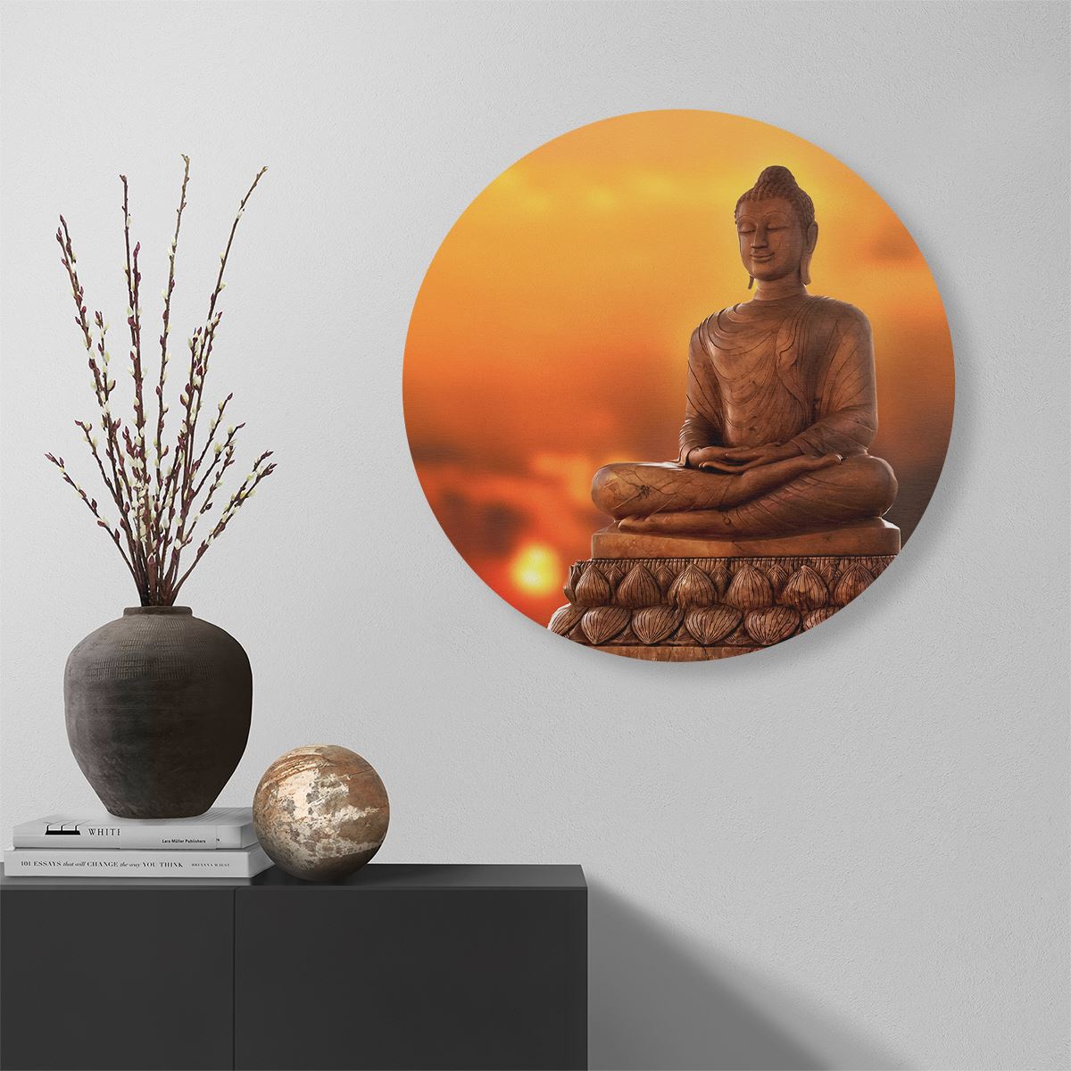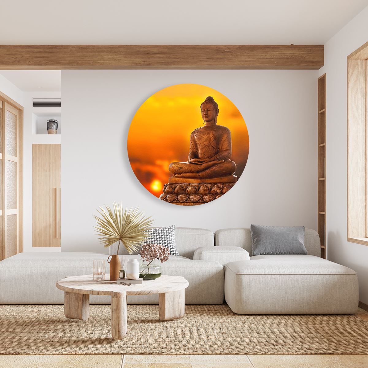 Wandcirkel Boeddha Standbeeld Bij Zonsondergang