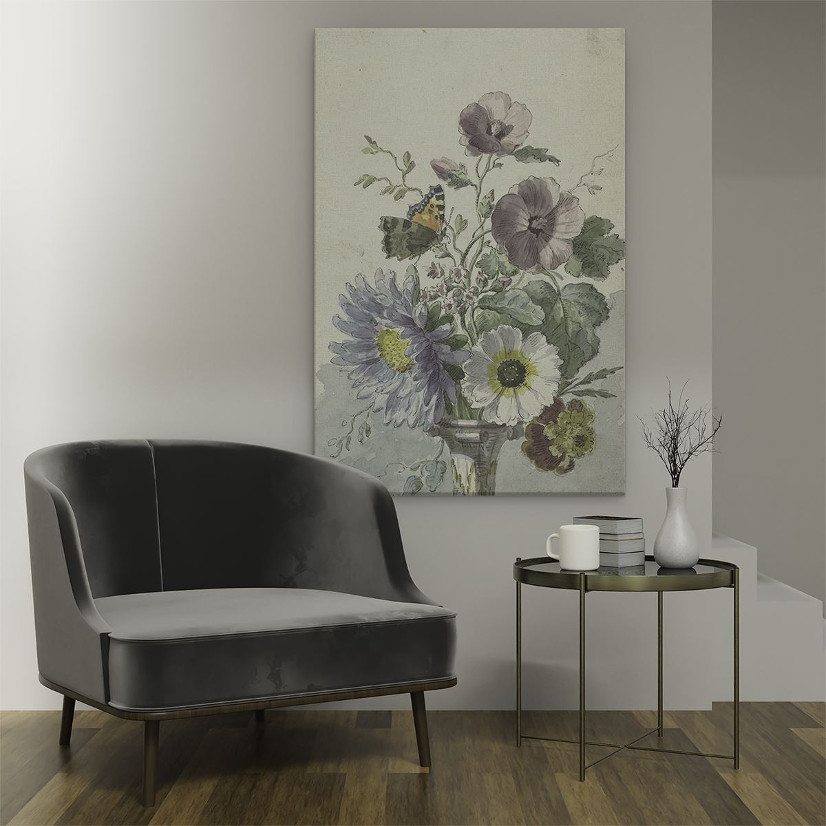 Schilderij Boeket Bloemen met een Vlinder - Willem van Leen