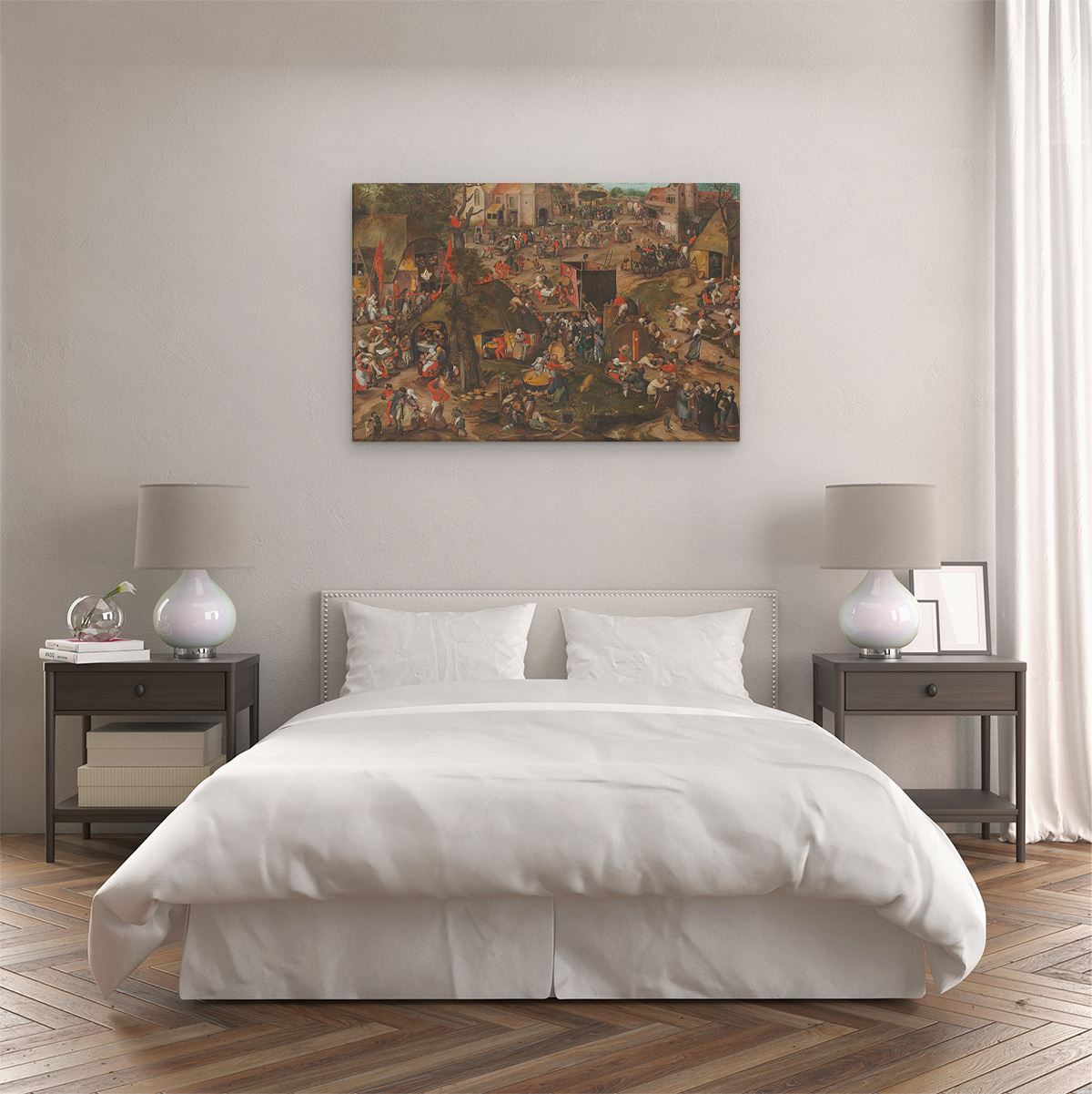 Schilderij Boerenkermis met een Opvoering van de Klucht, Een Cluyte van Plaeyerwater - Peeter Baltens