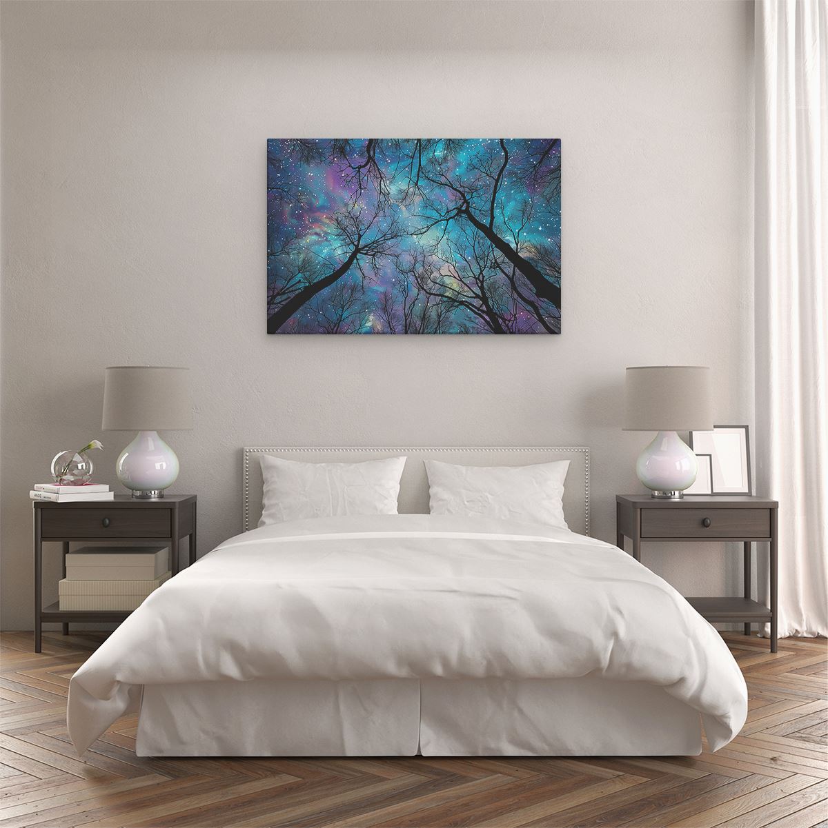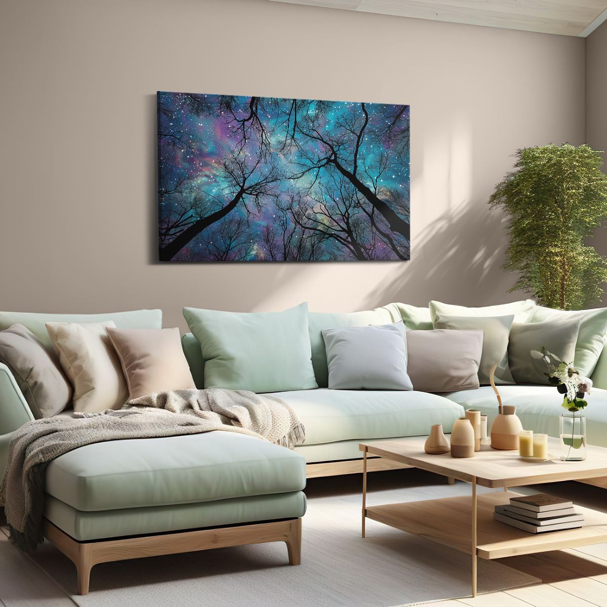 Schilderij Bomen in de Nachtelijke Hemel met Sterren