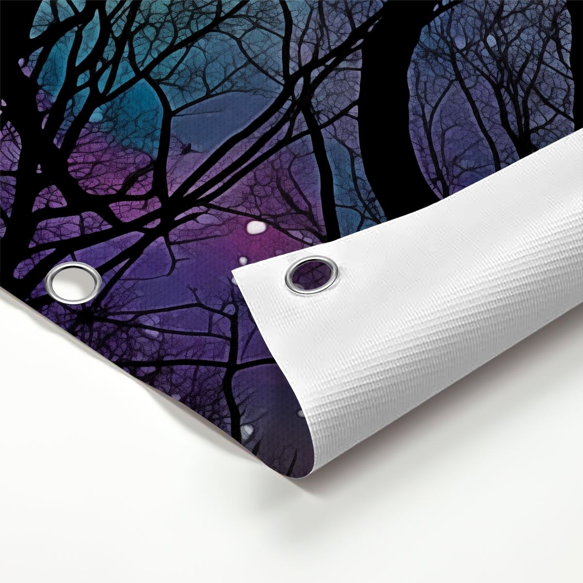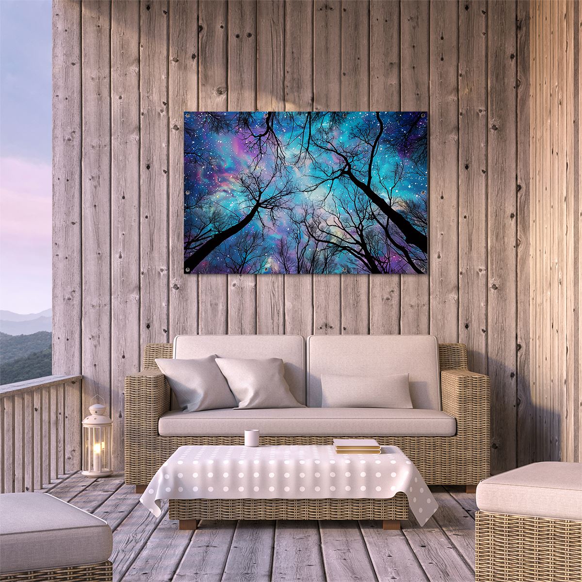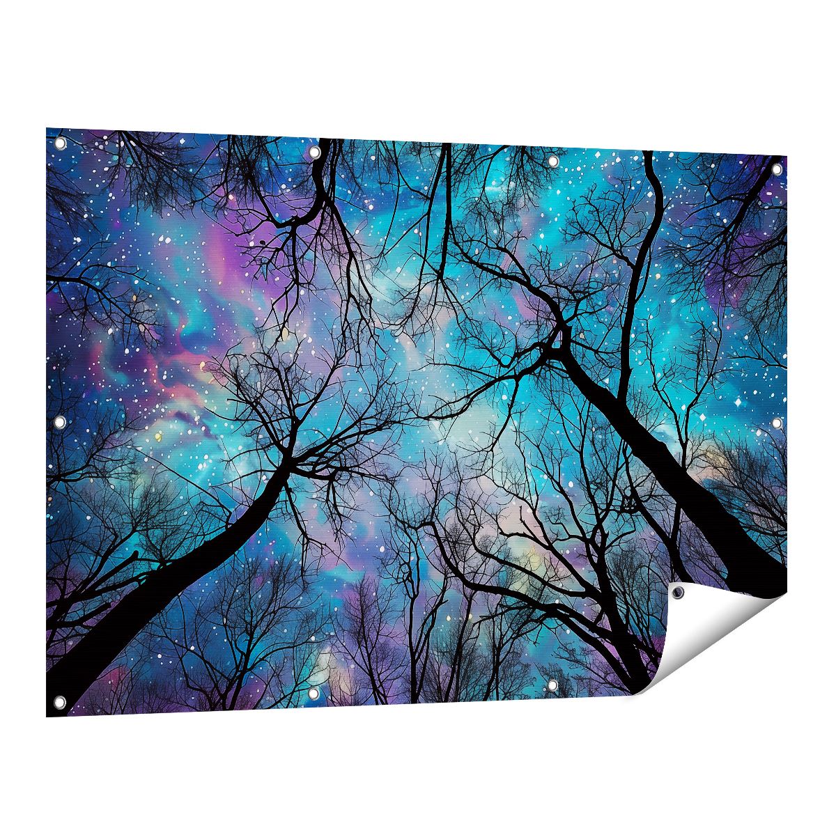 Tuinposter Bomen in de Nachtelijke Hemel met Sterren