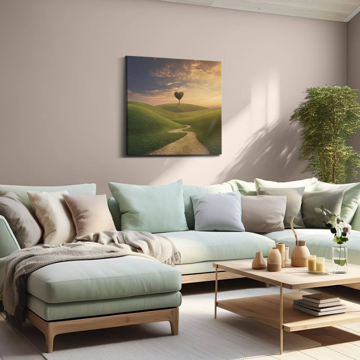 Bij aankoop ontvang je een meegeleverd ophangsysteem, zodat je op een simpele en snelle wijze het schilderij boven de bank of bed kan monteren.