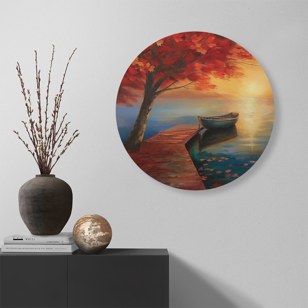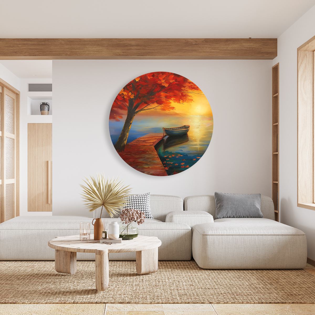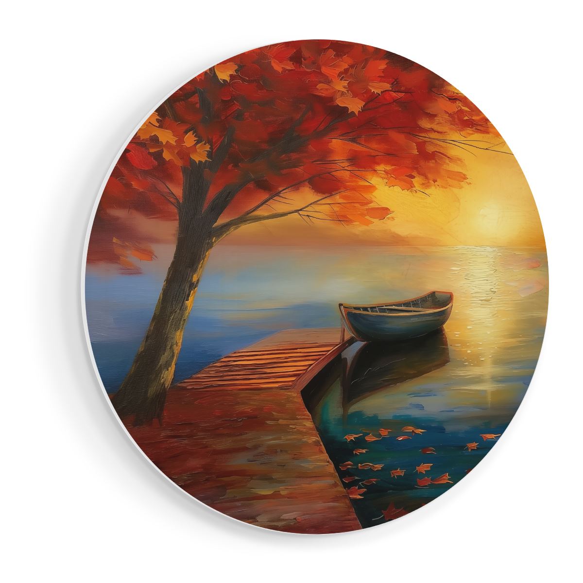 Wandcirkel Boot op een Dok bij Zonsondergang