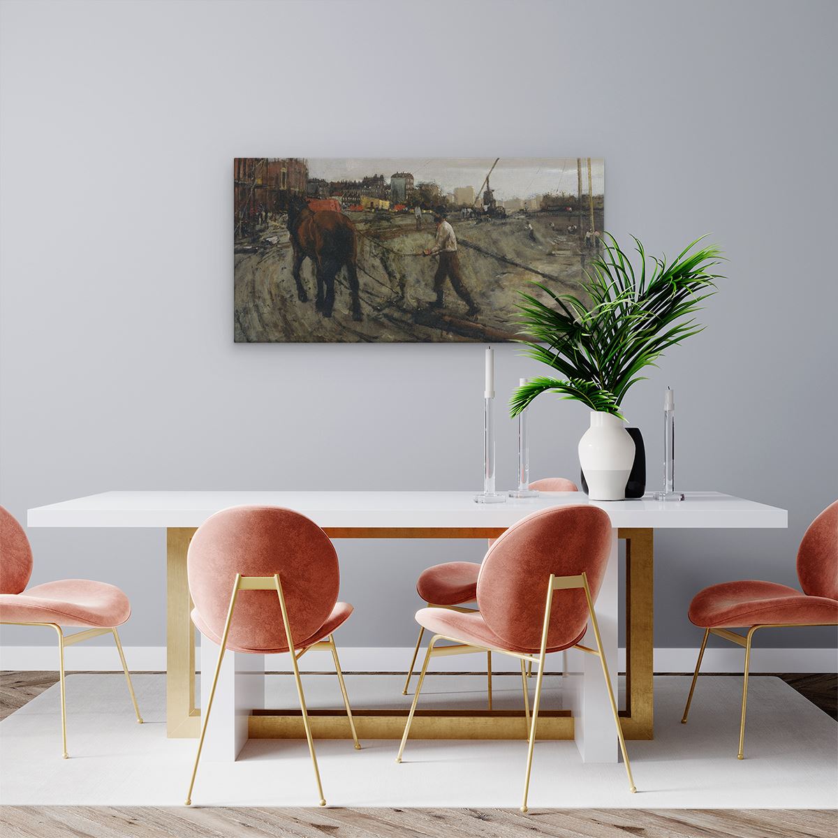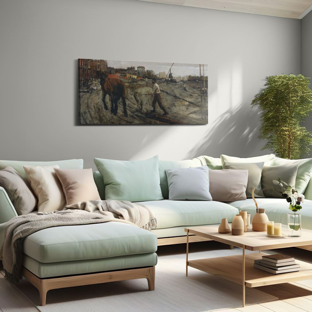Bij aankoop ontvang je een meegeleverd ophangsysteem, zodat je op een simpele en snelle wijze het schilderij boven de bank of bed kan monteren.