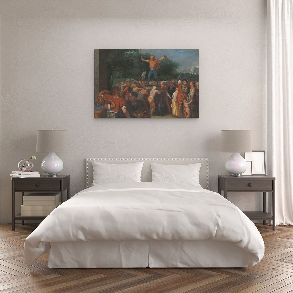 Bij aankoop ontvang je een meegeleverd ophangsysteem, zodat je op een simpele en snelle wijze het schilderij boven de bank of bed kan monteren.