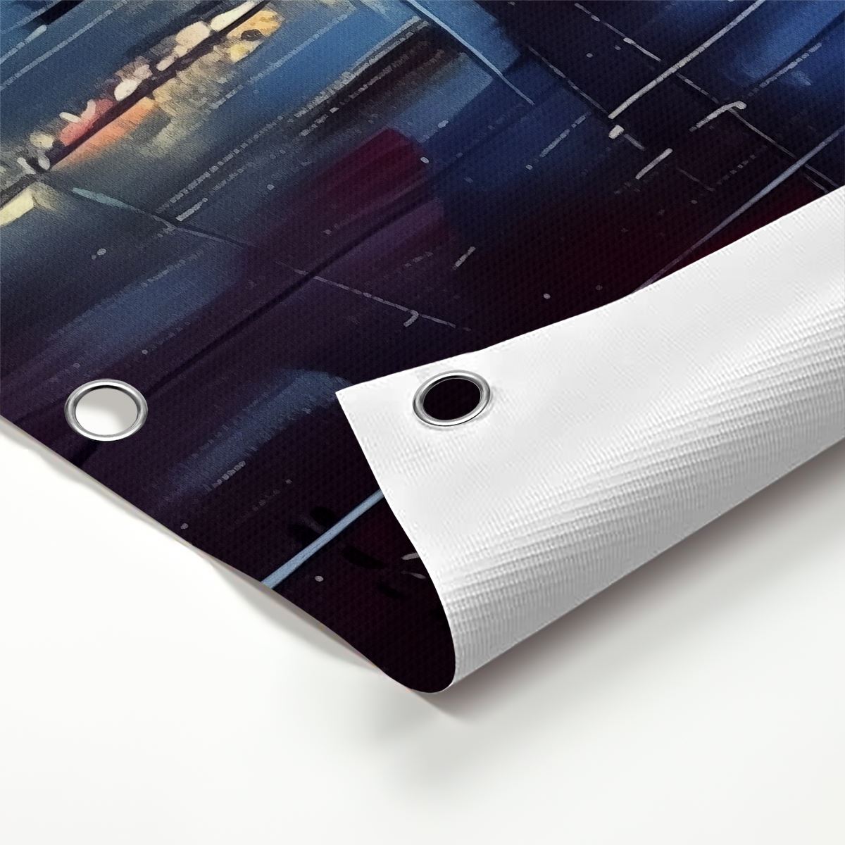 Tuinposter Brooklyn Bridge 's Nachts met een Rode Paraplu