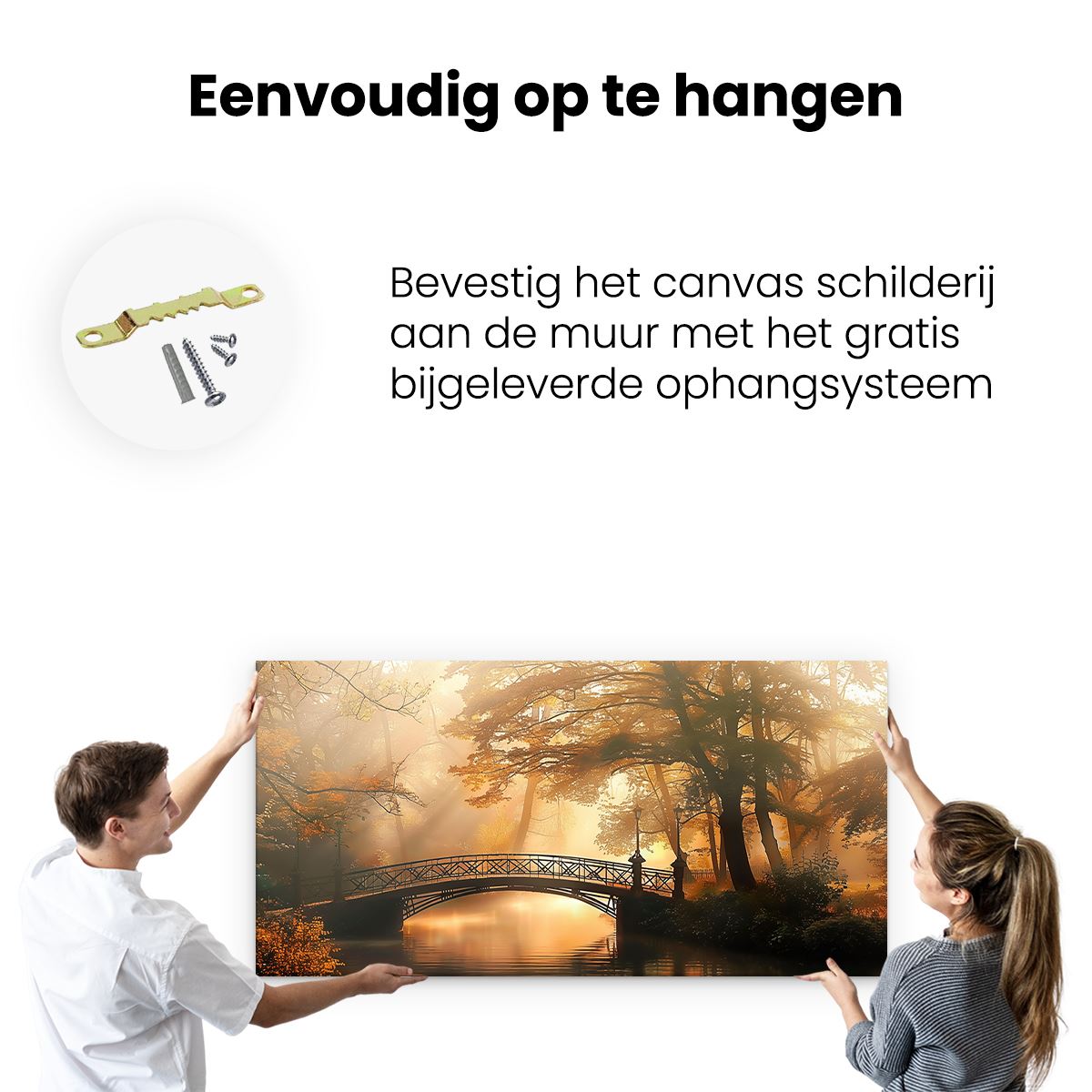 Bij aankoop ontvang je een meegeleverd ophangsysteem, zodat je op een simpele en snelle wijze het schilderij boven de bank of bed kan monteren.