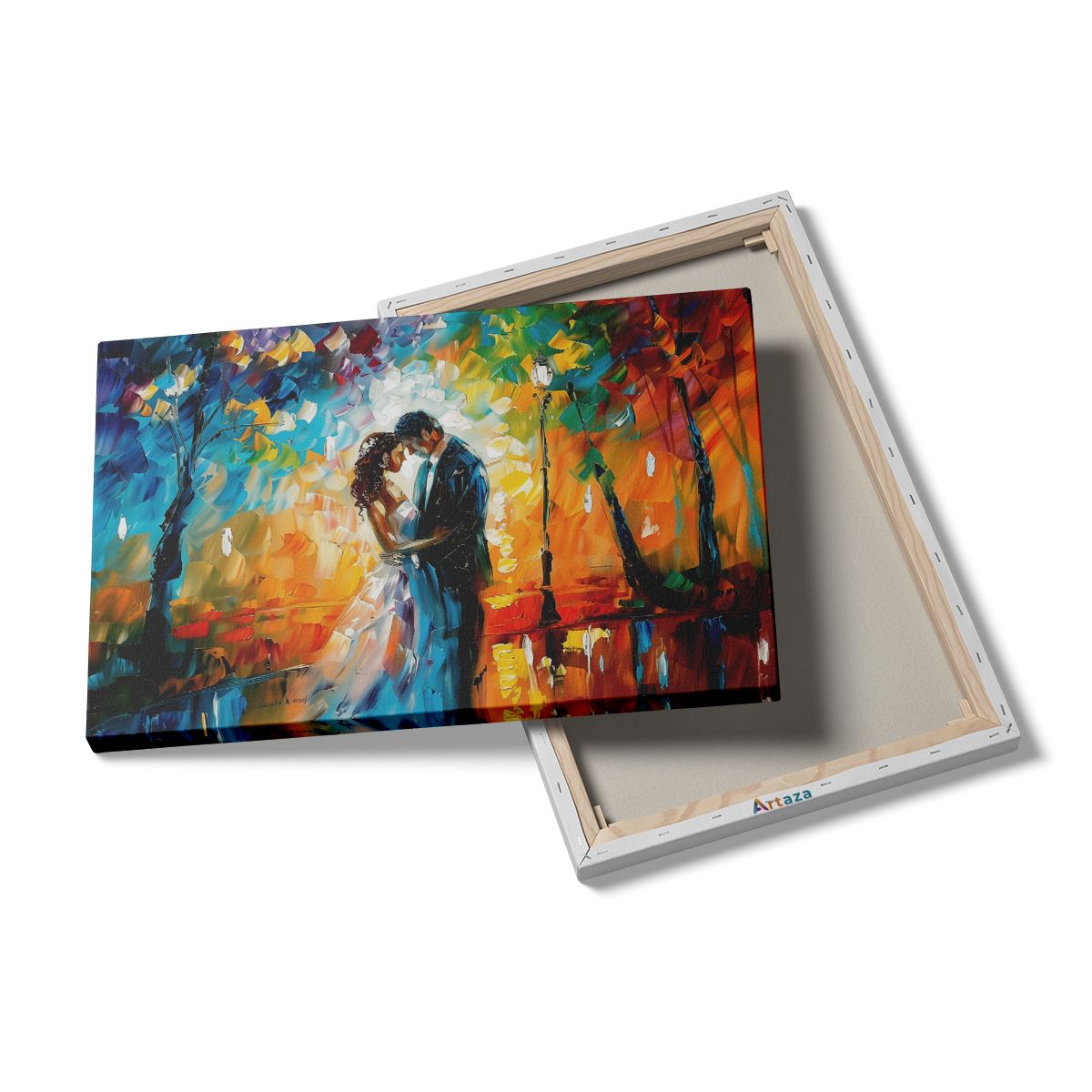 Schilderij Bruid en Bruidegom Kussen in de Regen
