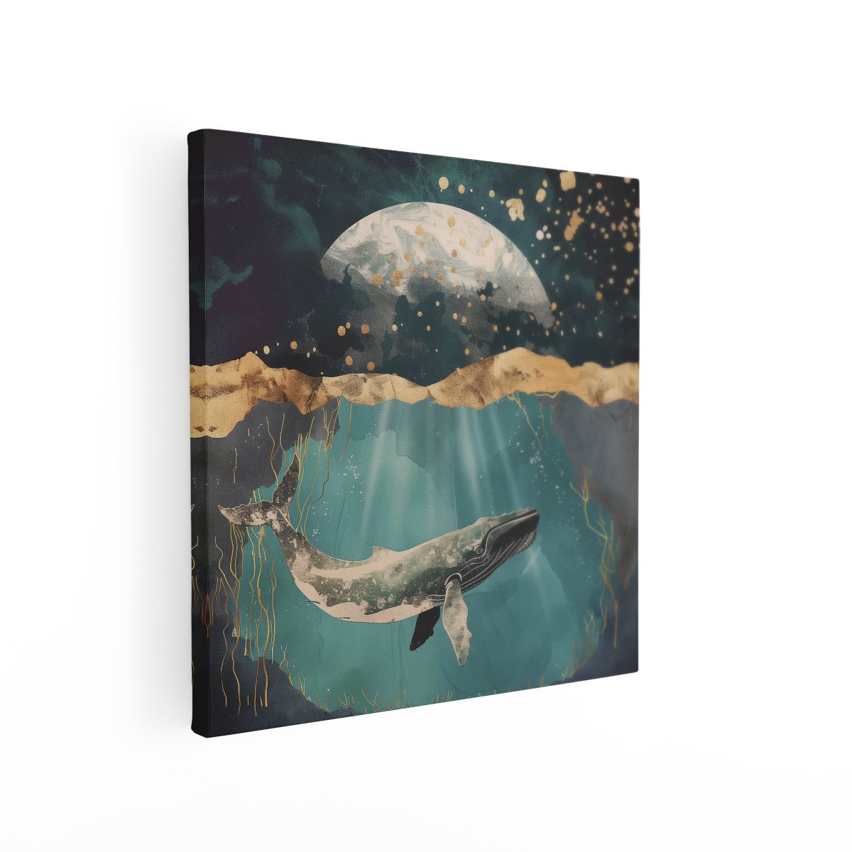 Schilderij Bultrug Zwemt onder de Maan