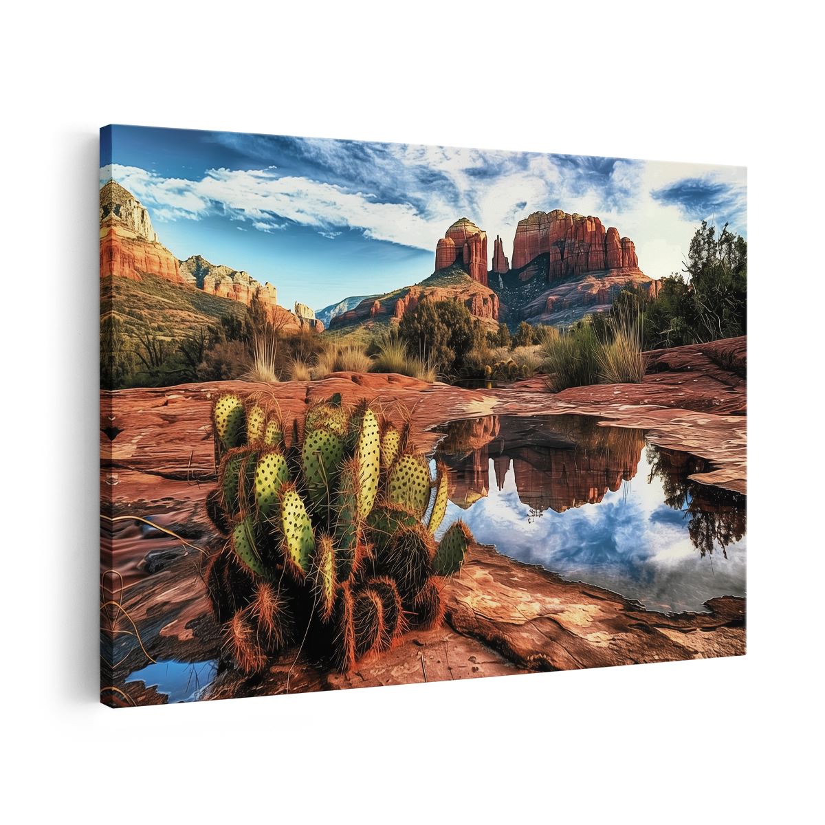 Schilderij Cactusplant Wordt Weerspiegeld in een Vijver in Sedona, Arizona