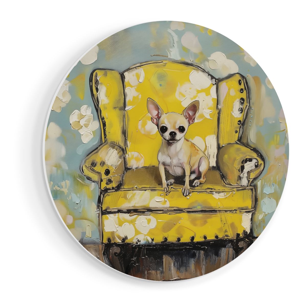 Je kunt het beste de cirkel plat op de vloer leggen en vanuit daar bepalen wat recht is. Op het hoogste punt plak je verticaal een plakbandje, en dit laat je dan een stukje over de achterkant heen lopen. Dan draai je de wandcirkel om en plak je de ophangplaat op ¼ deel van de bovenkant, recht onder het plakbandje.