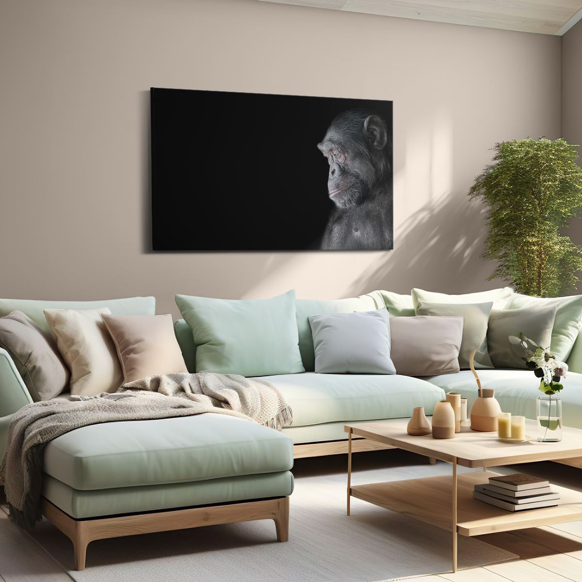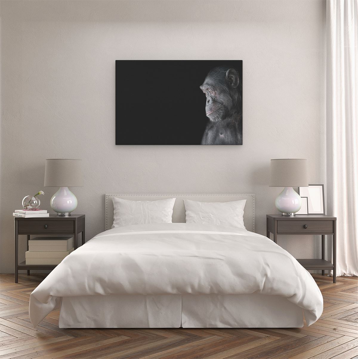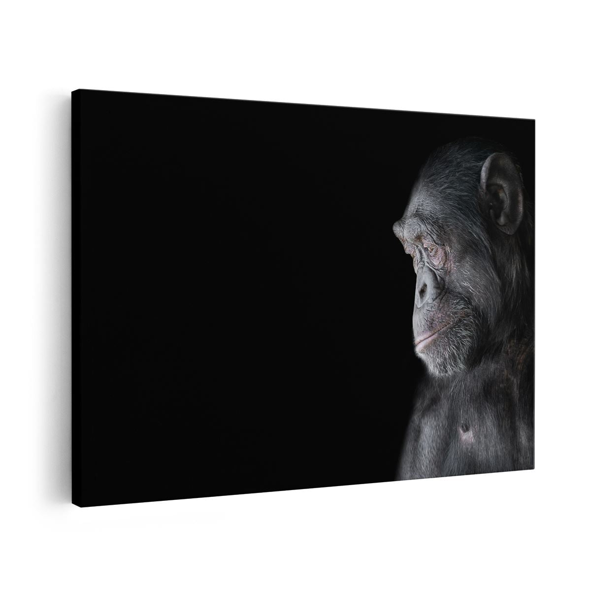 Schilderij Chimpansee Aap Op Zwart Achtergrond