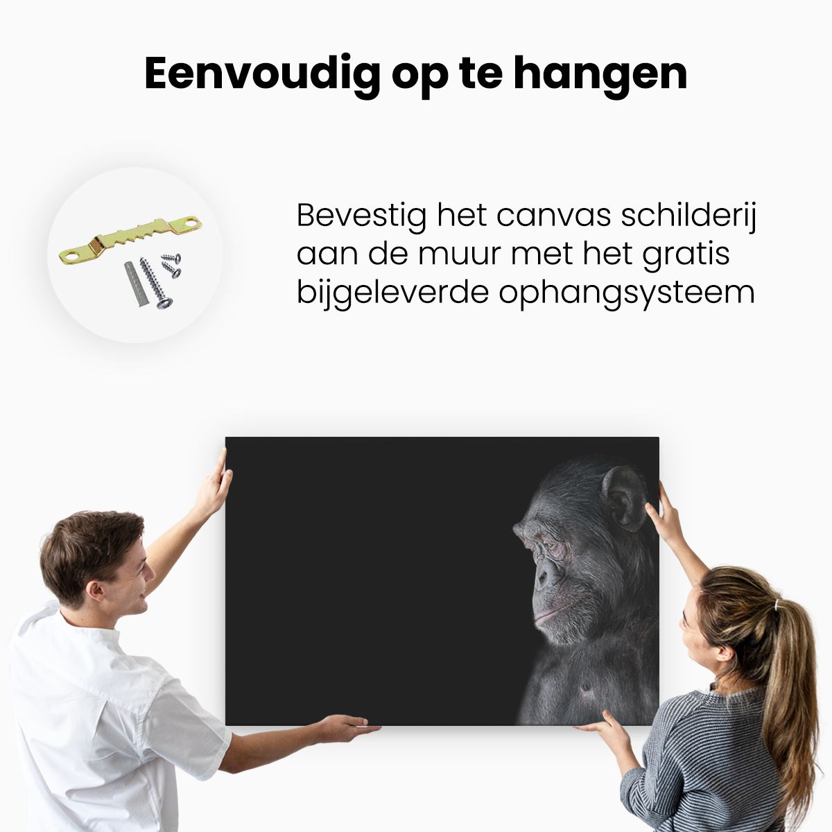 Bij aankoop ontvang je een meegeleverd ophangsysteem, zodat je op een simpele en snelle wijze het schilderij boven de bank of bed kan monteren.