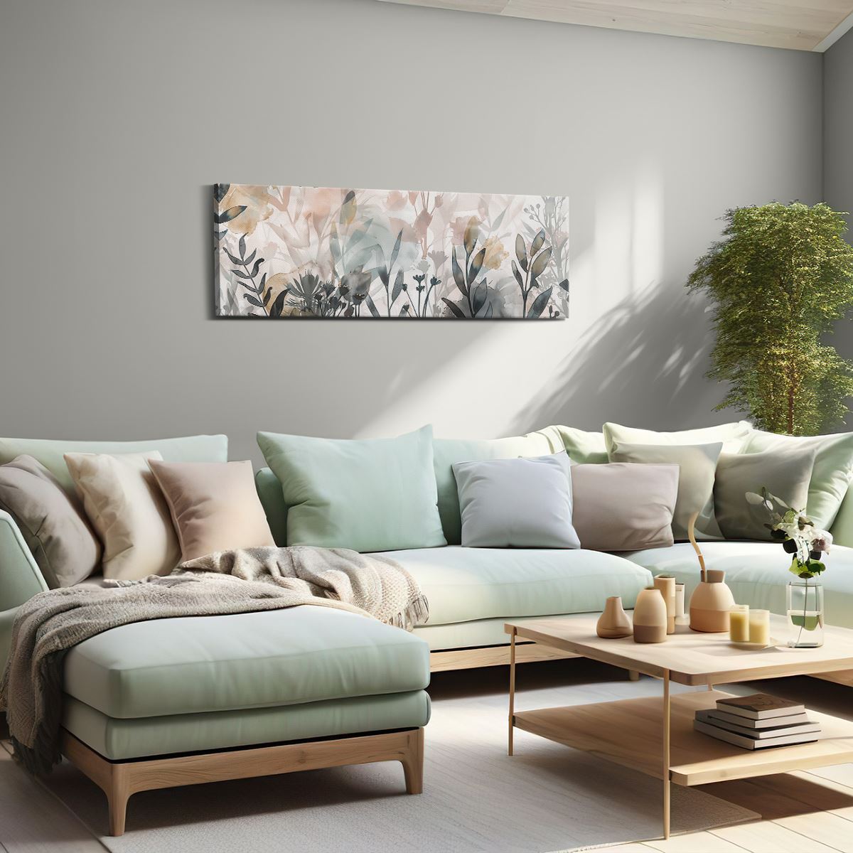 Schilderij De Afbeelding is een Aquarelkunstwerk van Bloemen en Grassen