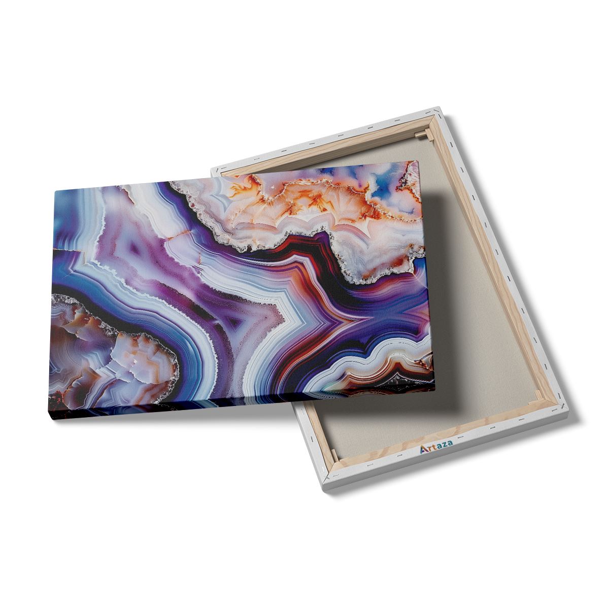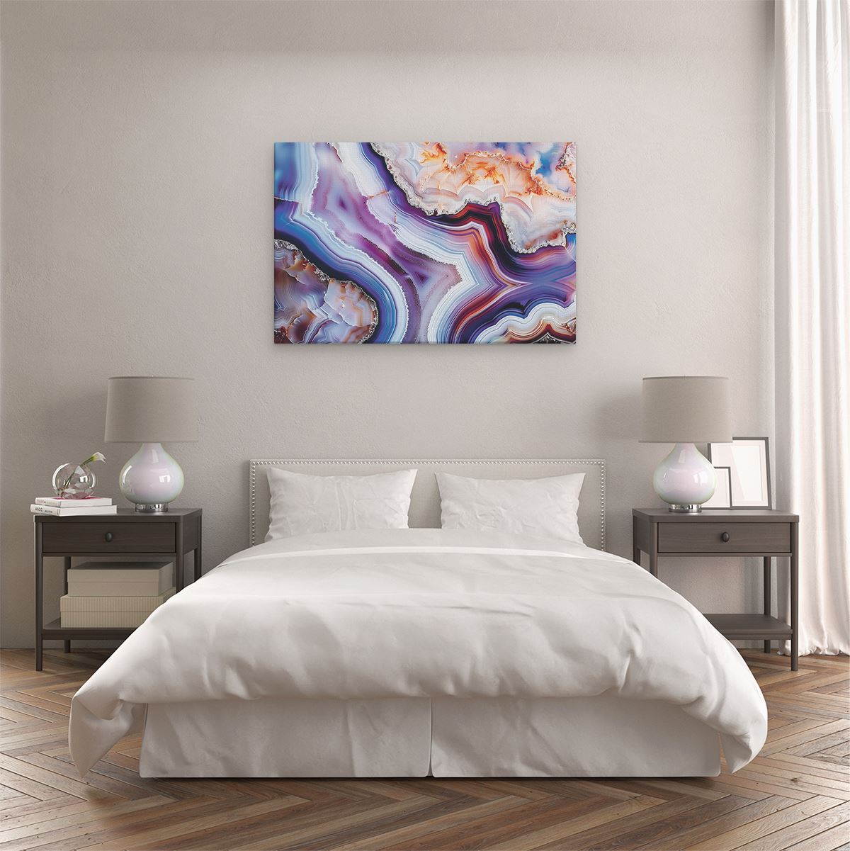 Schilderij De Afbeelding is een Close-Up van een Paarse, Blauwe en Oranje Agaat