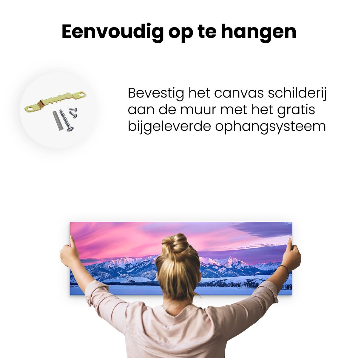 Bij aankoop ontvang je een meegeleverd ophangsysteem, zodat je op een simpele en snelle wijze het schilderij boven de bank of bed kan monteren.