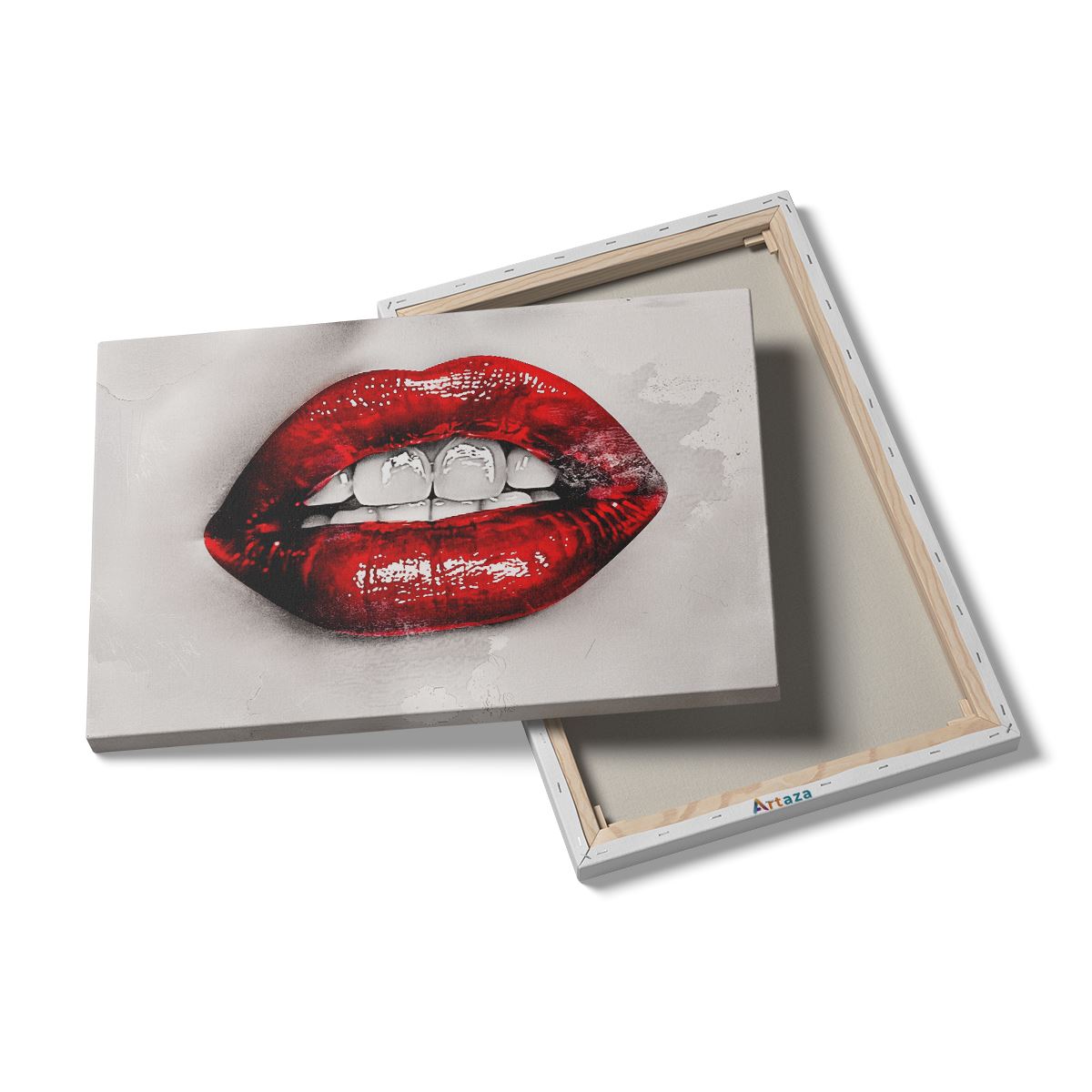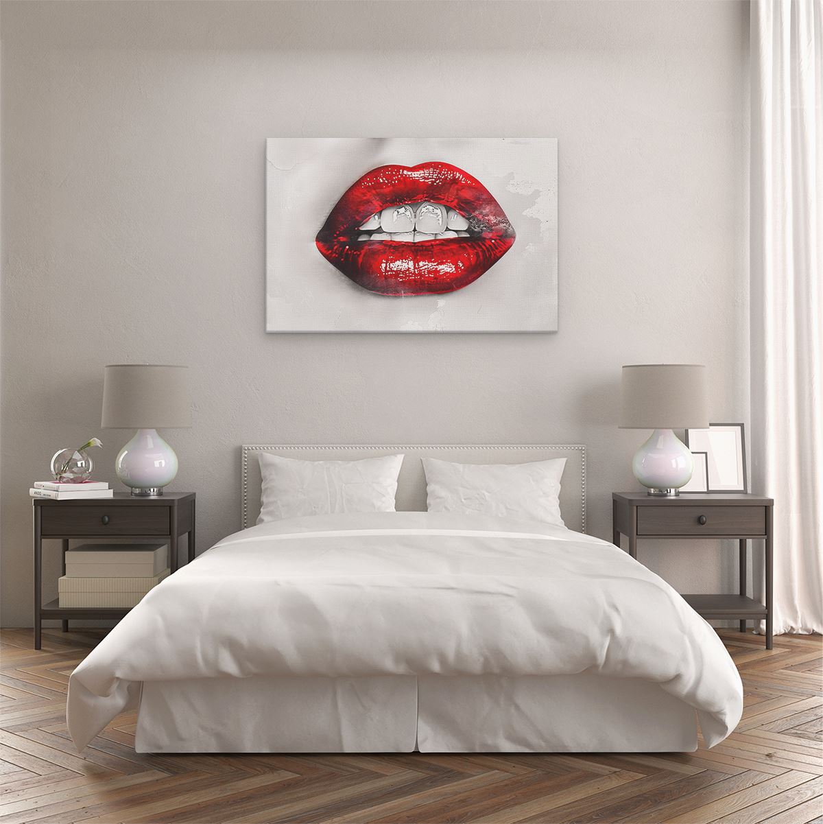 Schilderij De Rode Lippen van de Vrouw met Witte Tanden