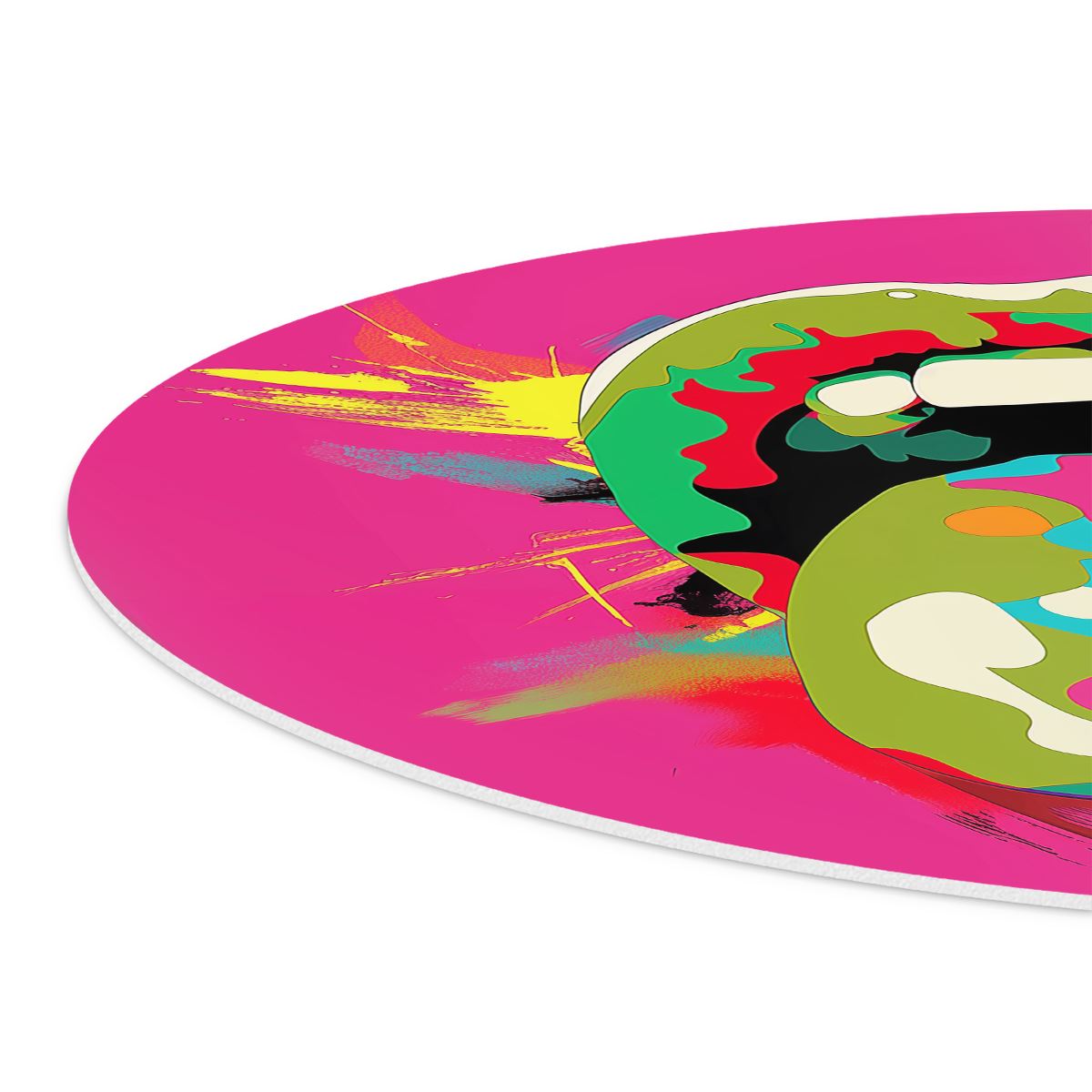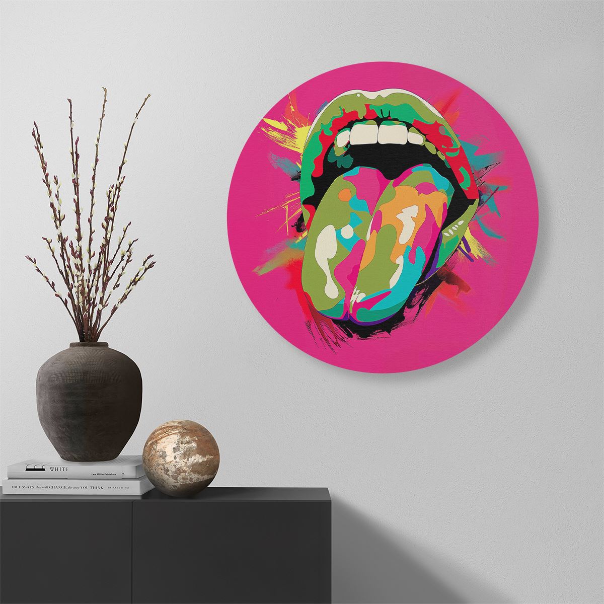 Wandcirkel De Tong van de Rollende Stenen op een Roze Achtergrond