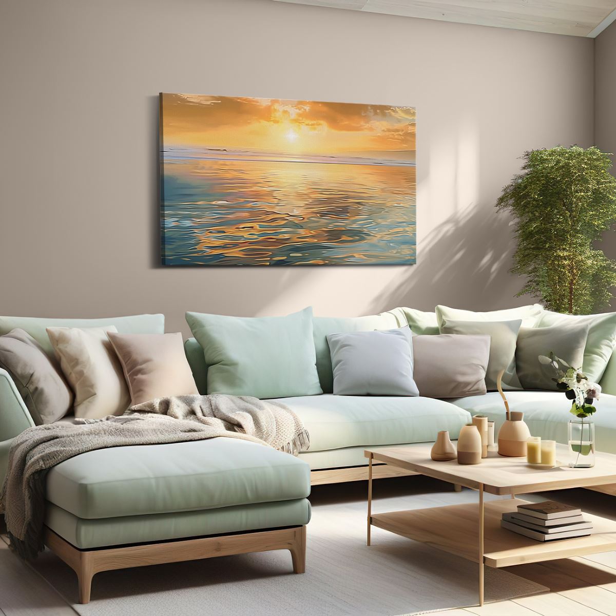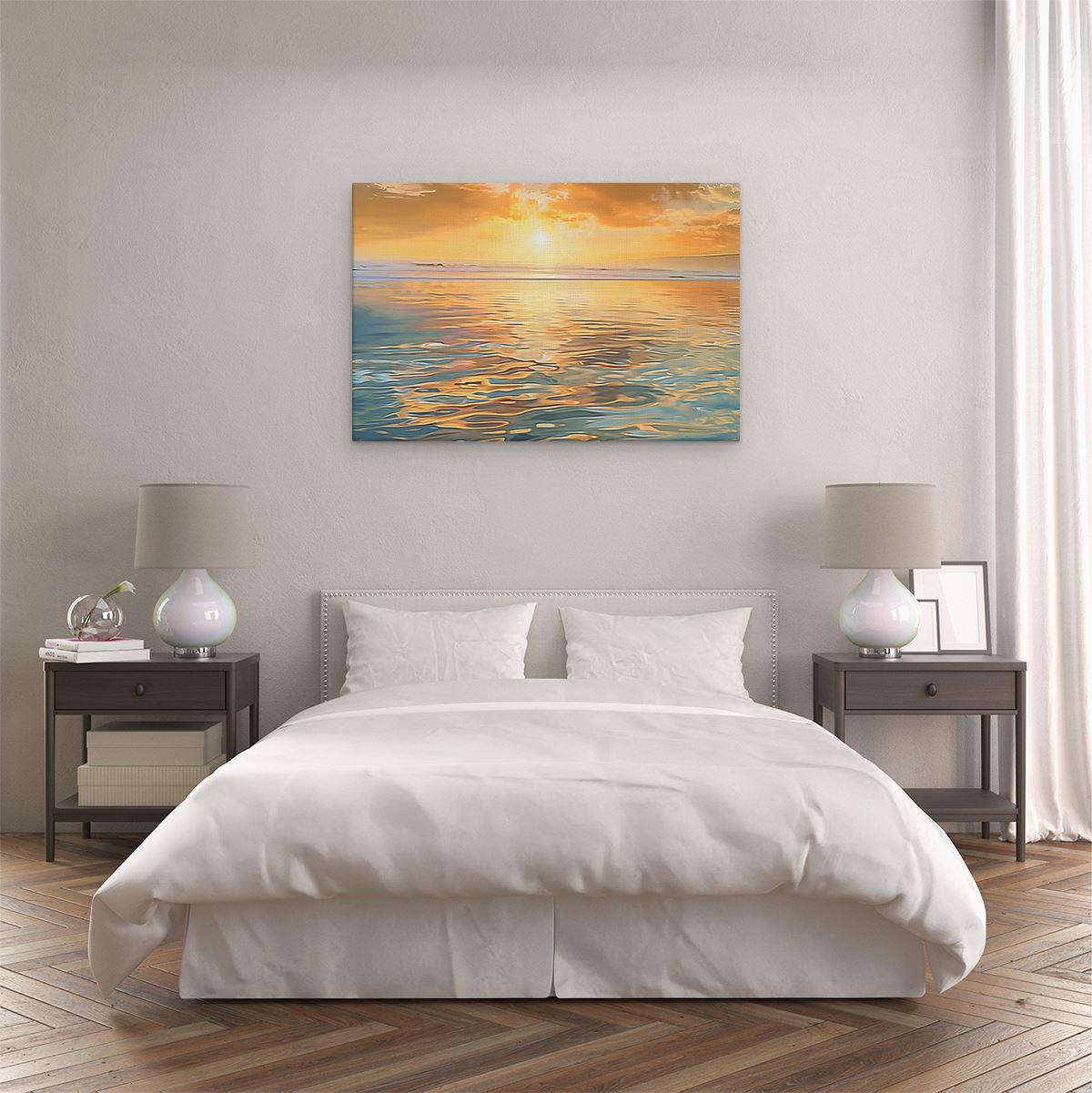 Canvas schilderij vooraanzicht De Zon gaat onder boven de Oceaan 30x20