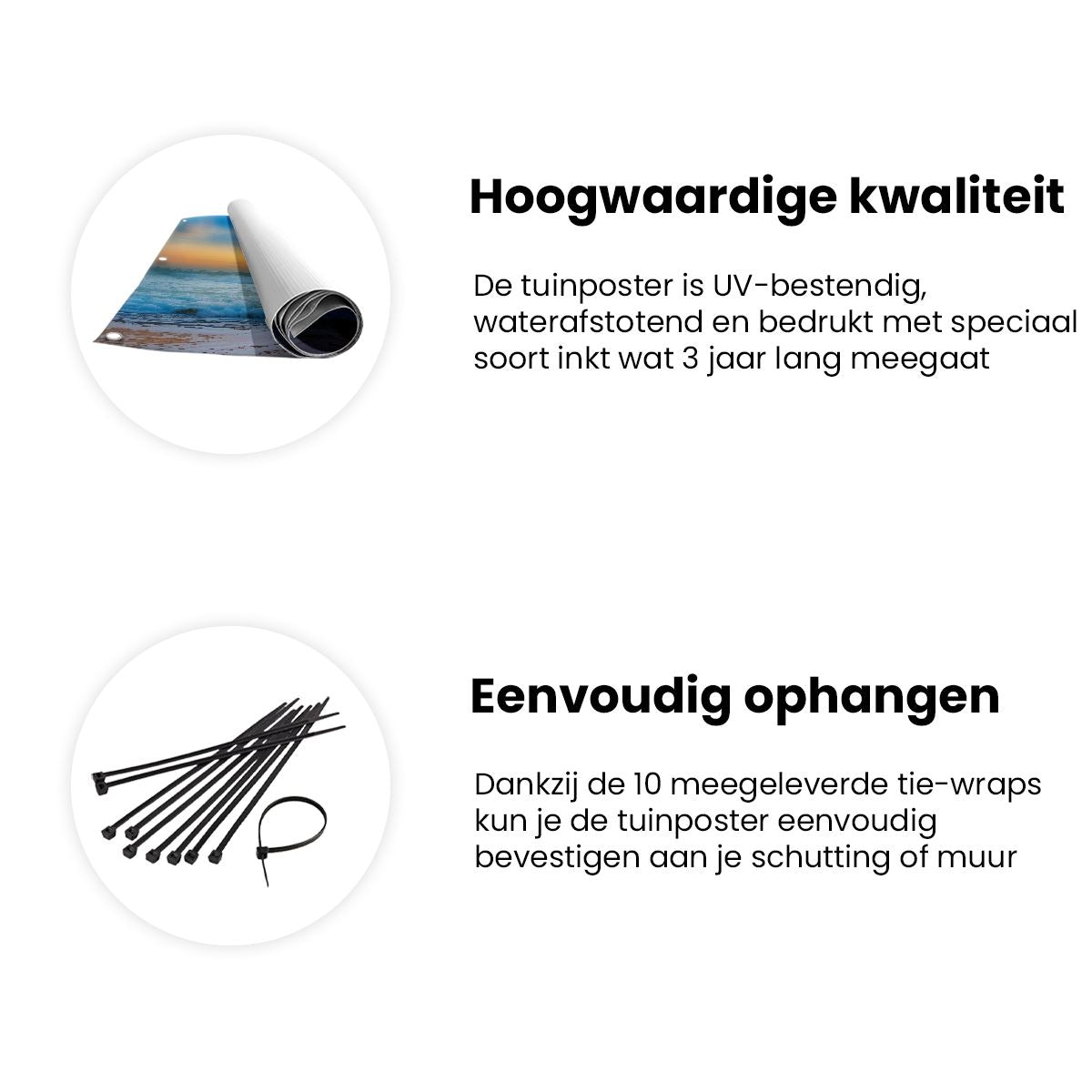 Bij aankoop ontvang je een meegeleverd ophangsysteem, zodat je op een simpele en snelle wijze de tuinposter kan ophangen.