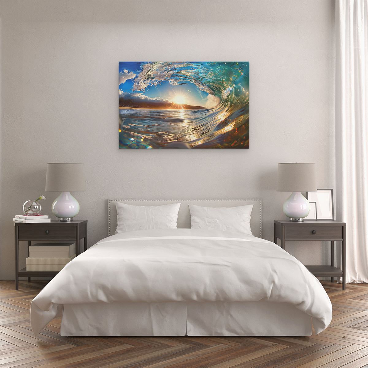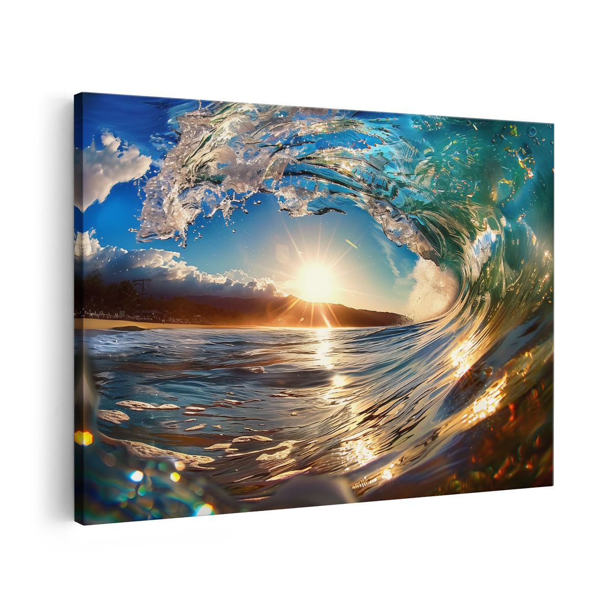 Schilderij De Zon schijnt door een Golf in de Oceaan