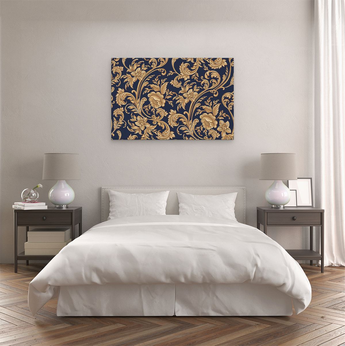 Schilderij Decoratieve Gouden Bloemen Achtergrond