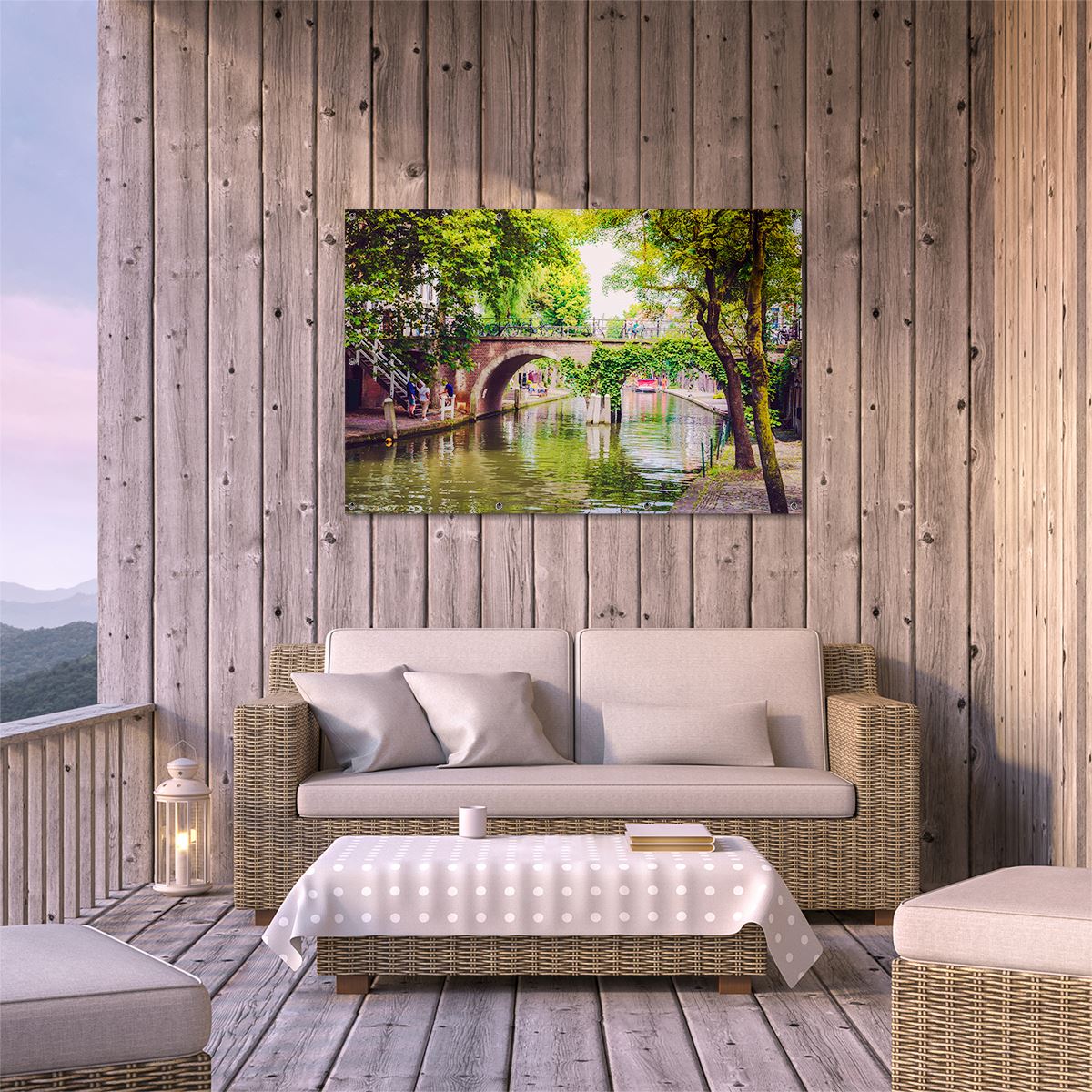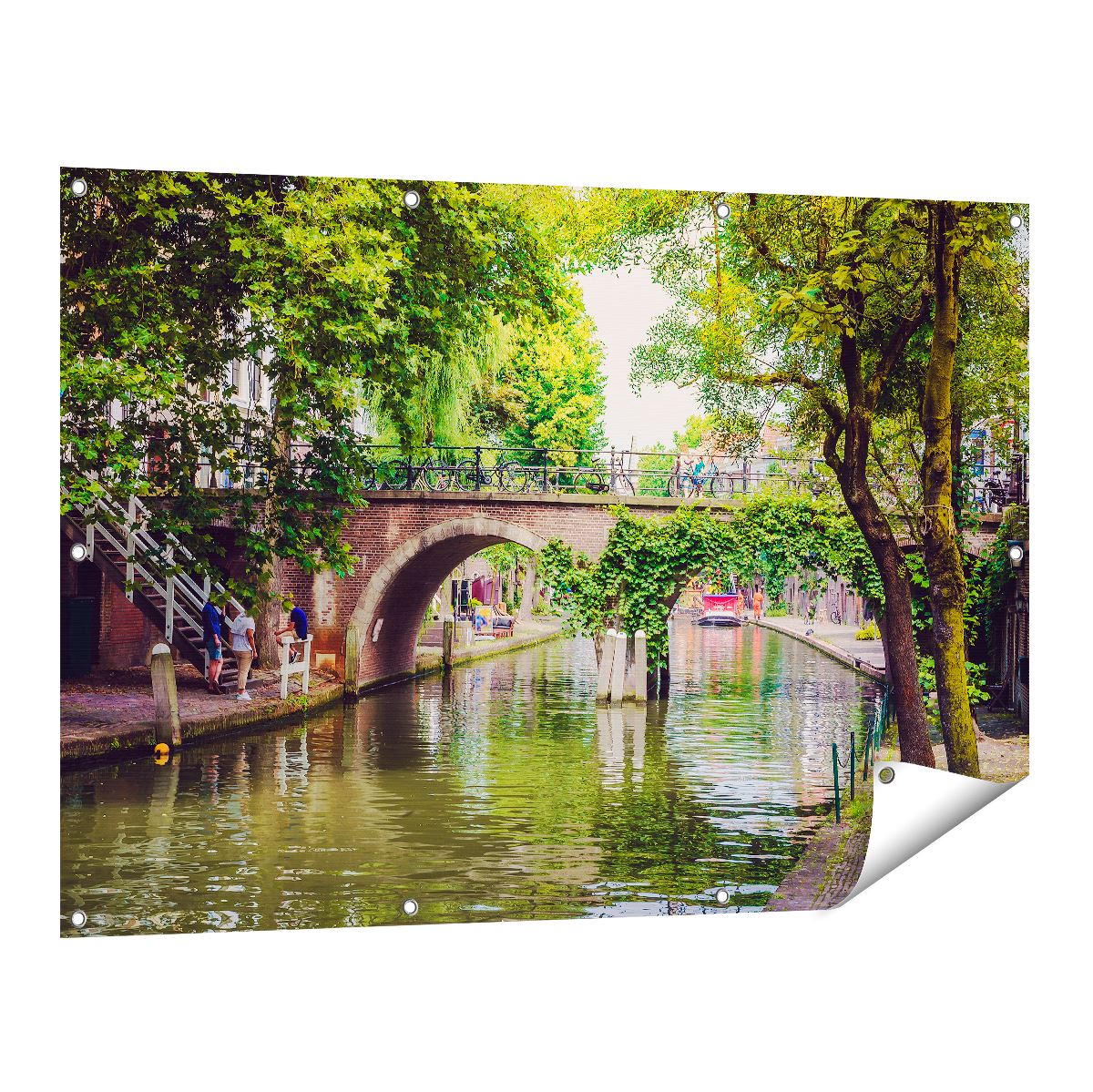 Tuinposter Dichtbegroeide Brug Op De Oudegracht In Utrecht