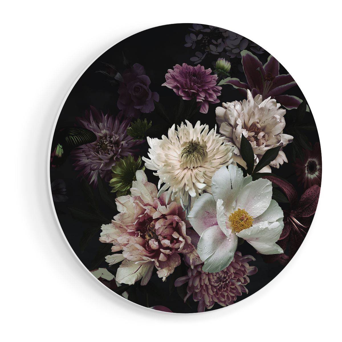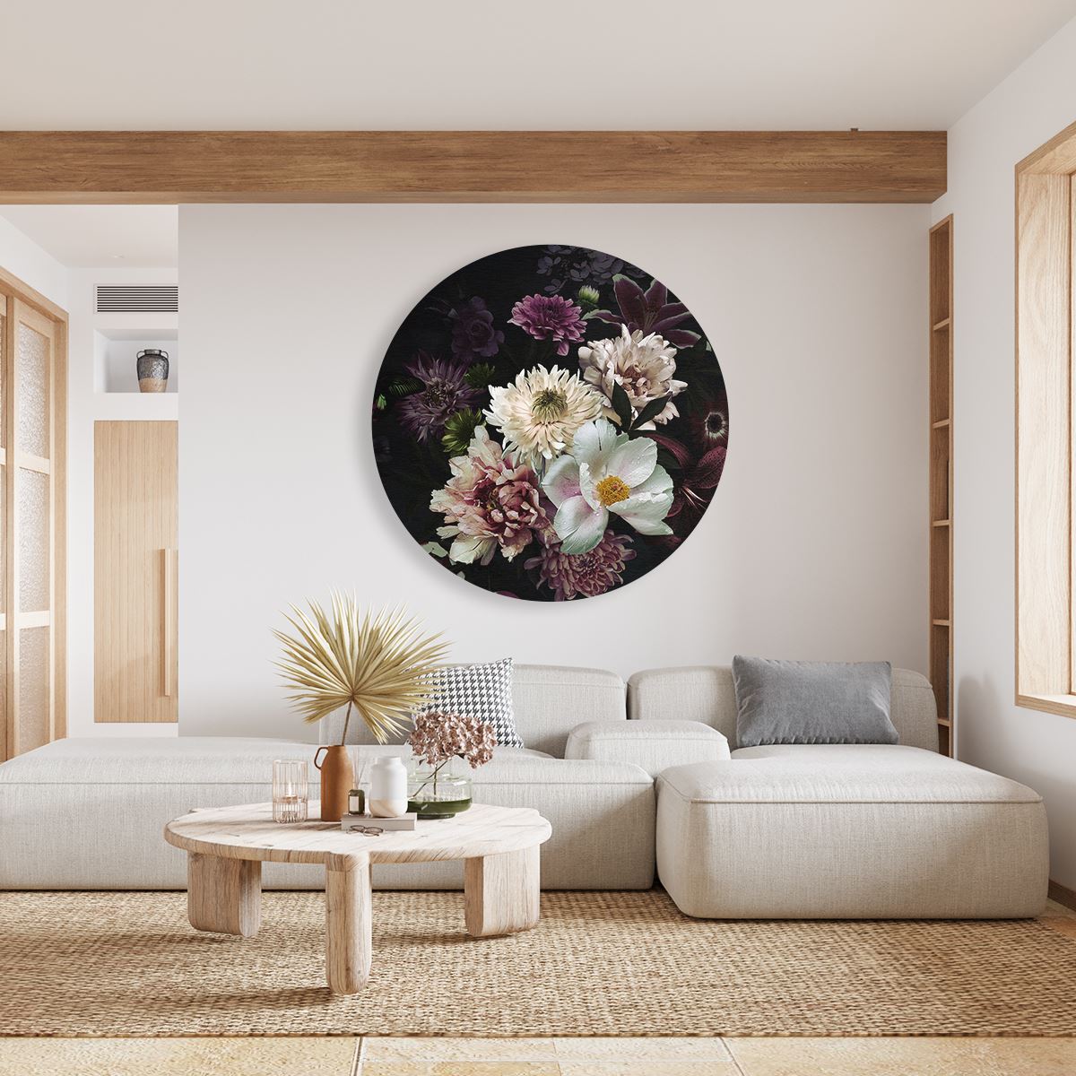 Wandcirkel Diverse Bloemen Op Zwart Achtergrond