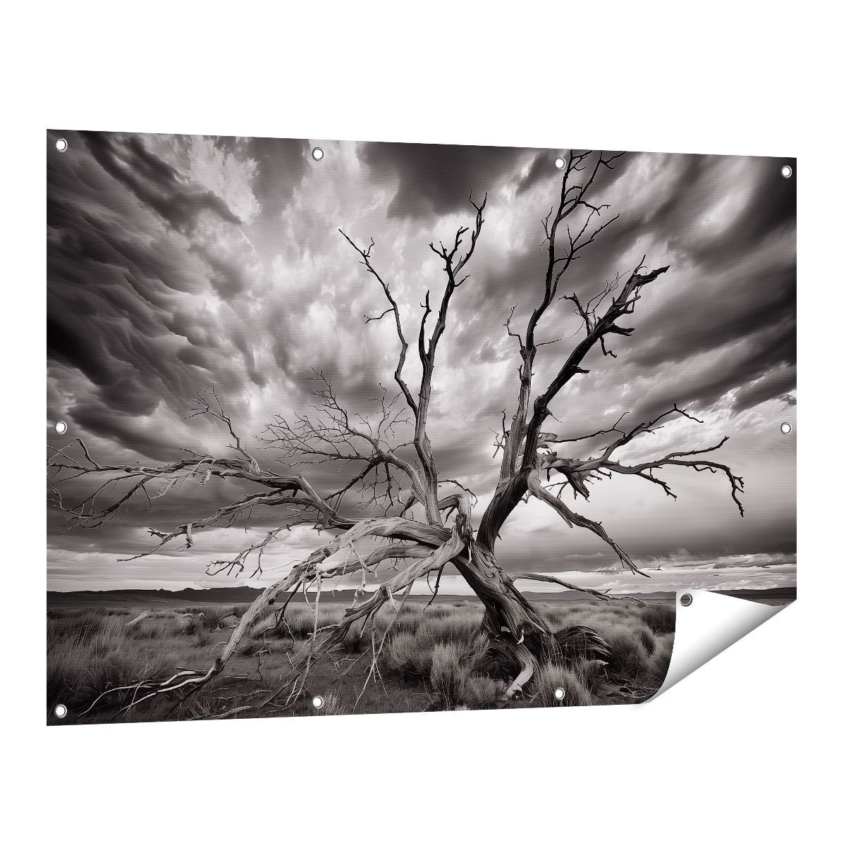 Tuinposter Dode Boom Midden in een Stormachtige Lucht
