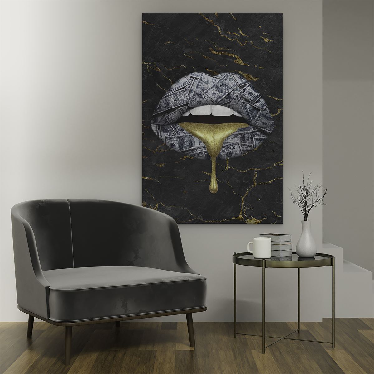 Schilderij Dollar Lippen Met Gesmolten Goud