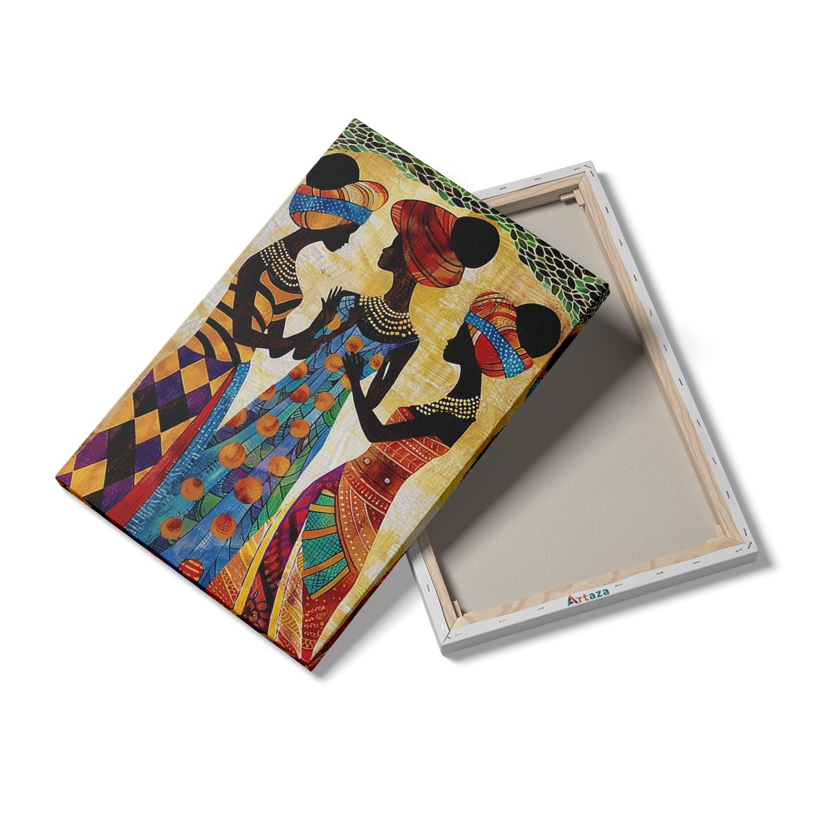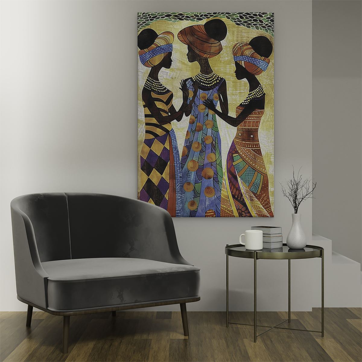 Schilderij Drie Afrikaanse Vrouwen in Kleurrijke Outfits
