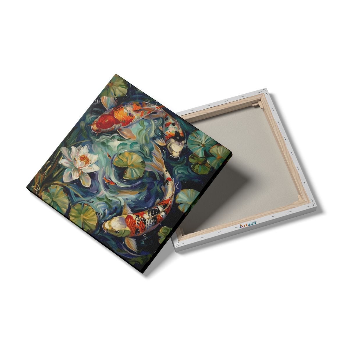 Schilderij Drie Koivissen in een Vijver met Waterlelies