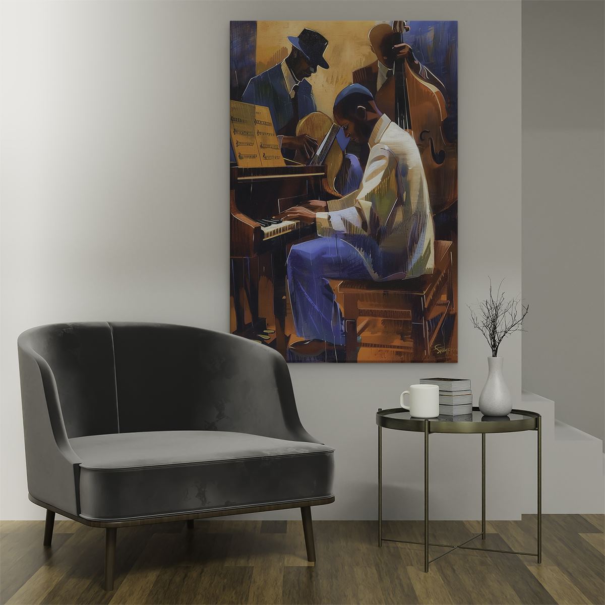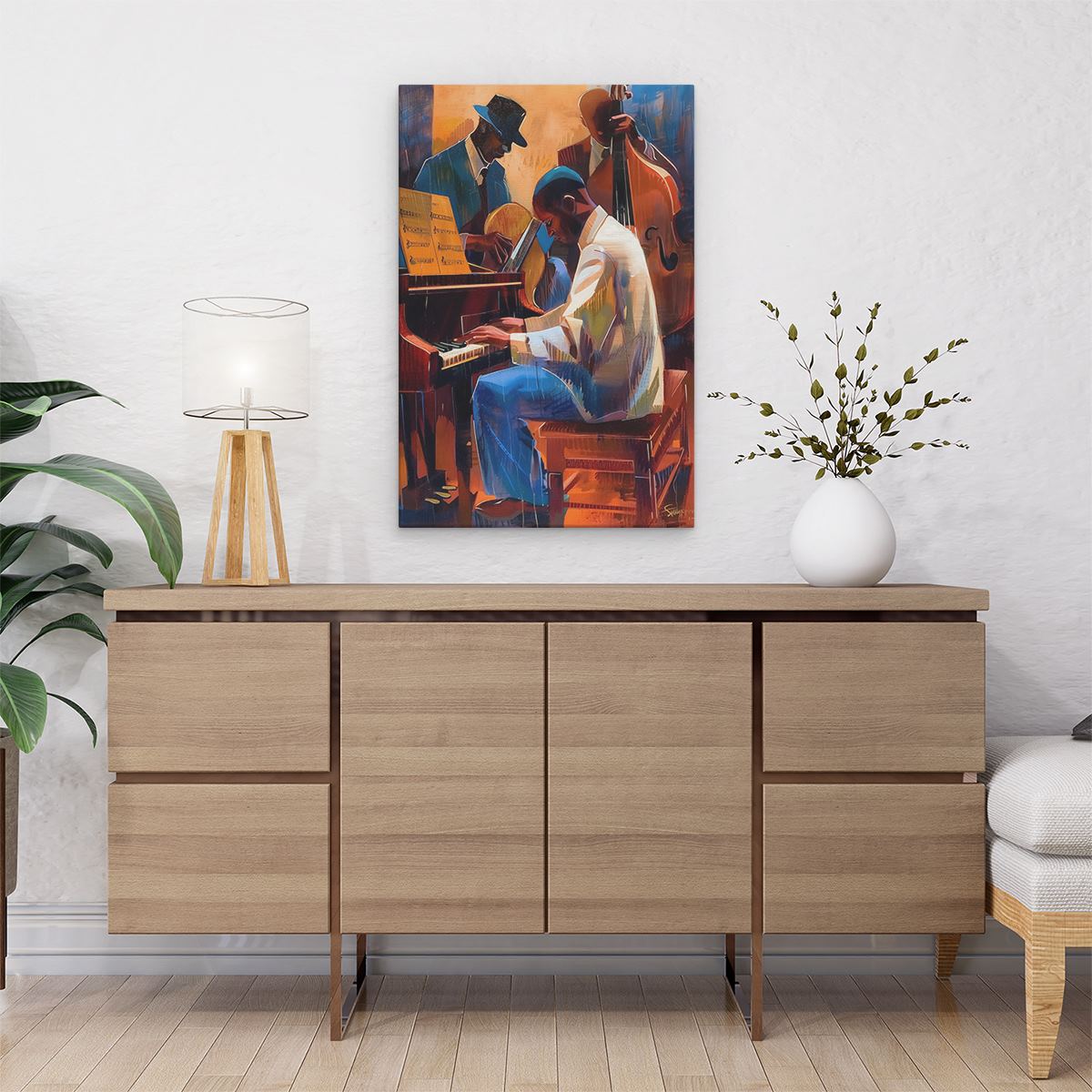 Schilderij Drie Muzikanten die Piano Spelen