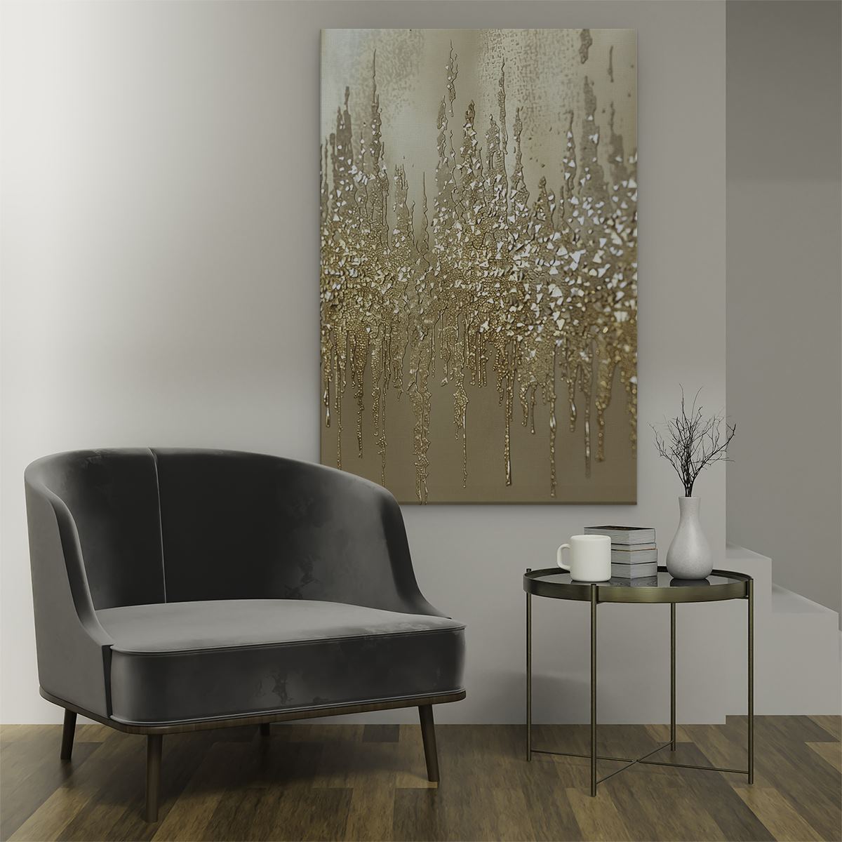 Bij aankoop ontvang je een meegeleverd ophangsysteem, zodat je op een simpele en snelle wijze het schilderij boven de bank of bed kan monteren.