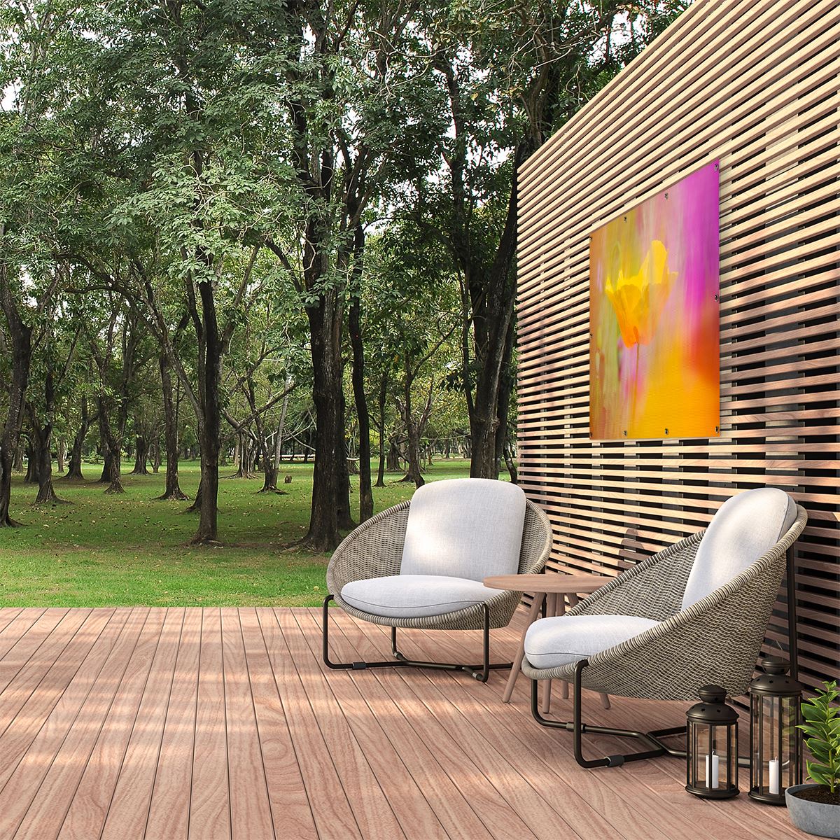 Bij aankoop ontvang je een meegeleverd ophangsysteem, zodat je op een simpele en snelle wijze de tuinposter kan ophangen.