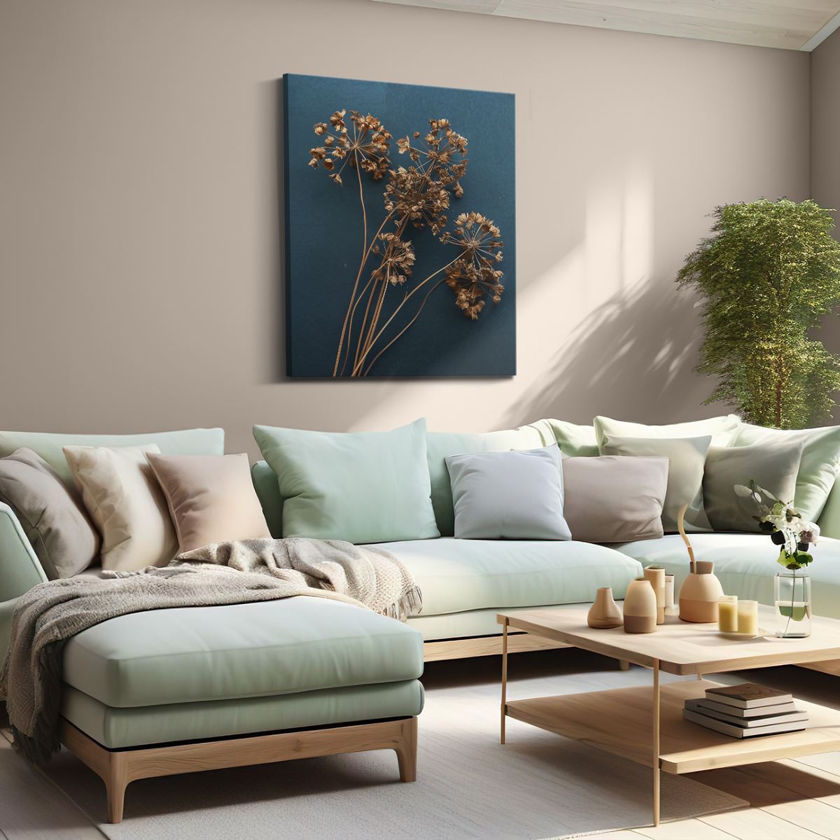 Schilderij Gedroogde Bloemen op een Blauwe Achtergrond