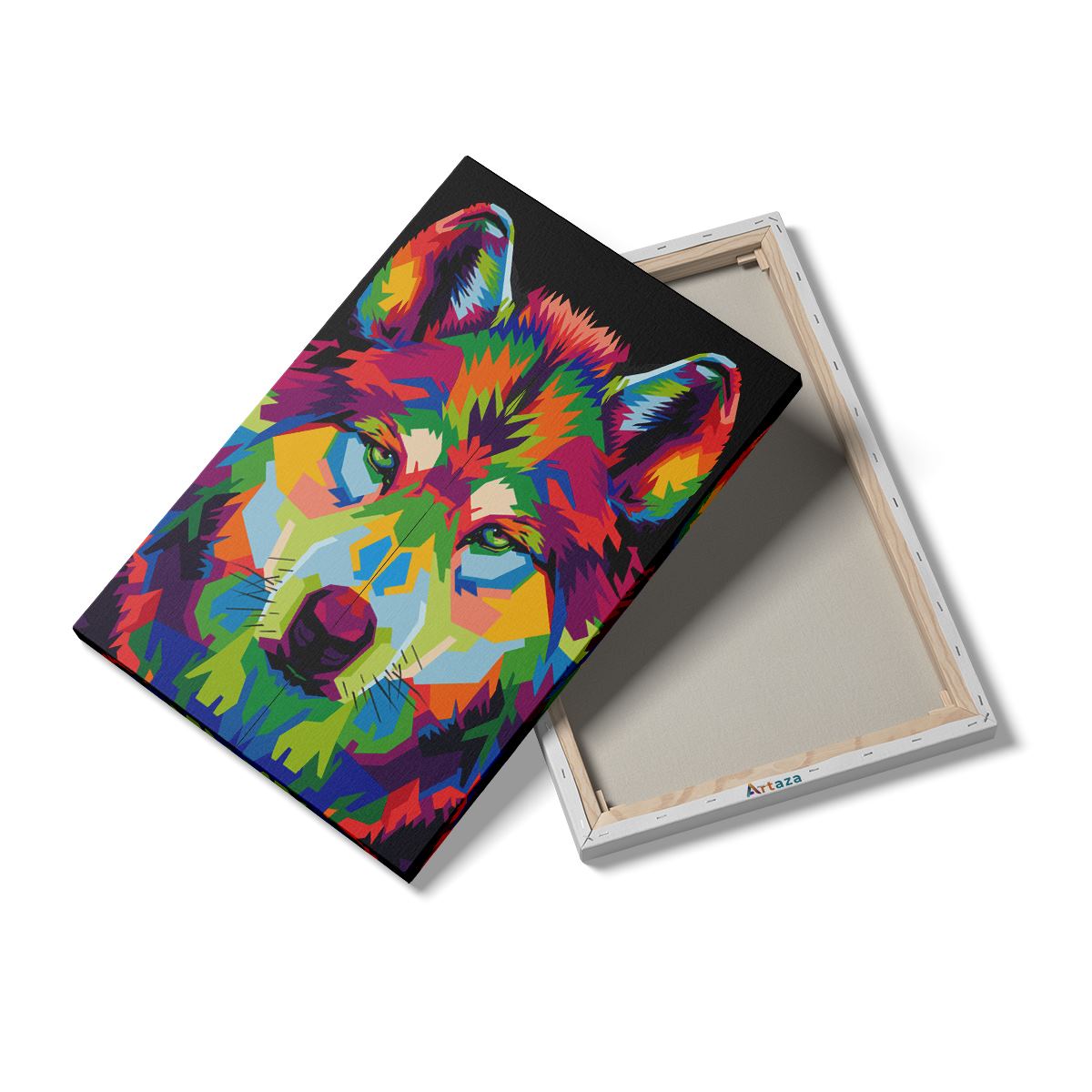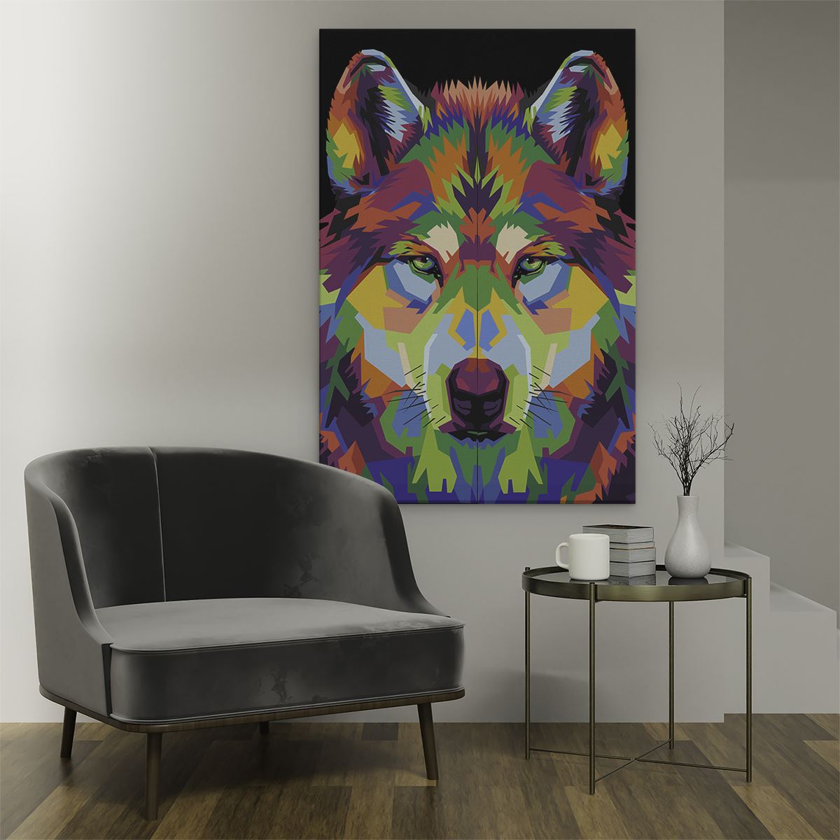 Canvas Schilderij Staand Gekleurde Wolvenkop - Wolf - Abstract 30x40