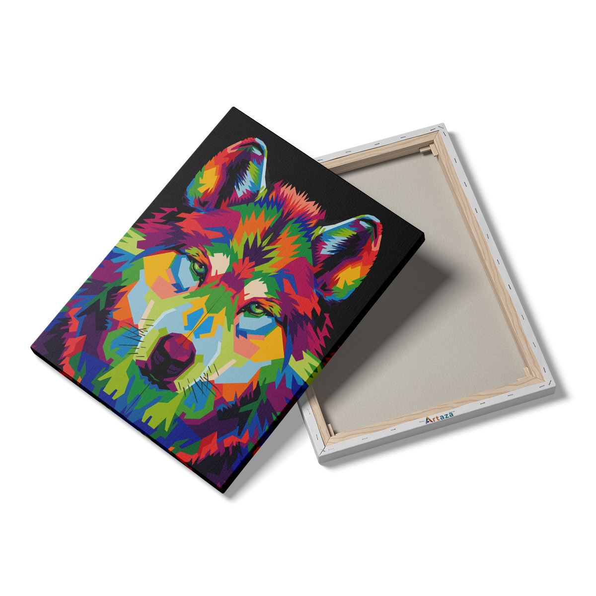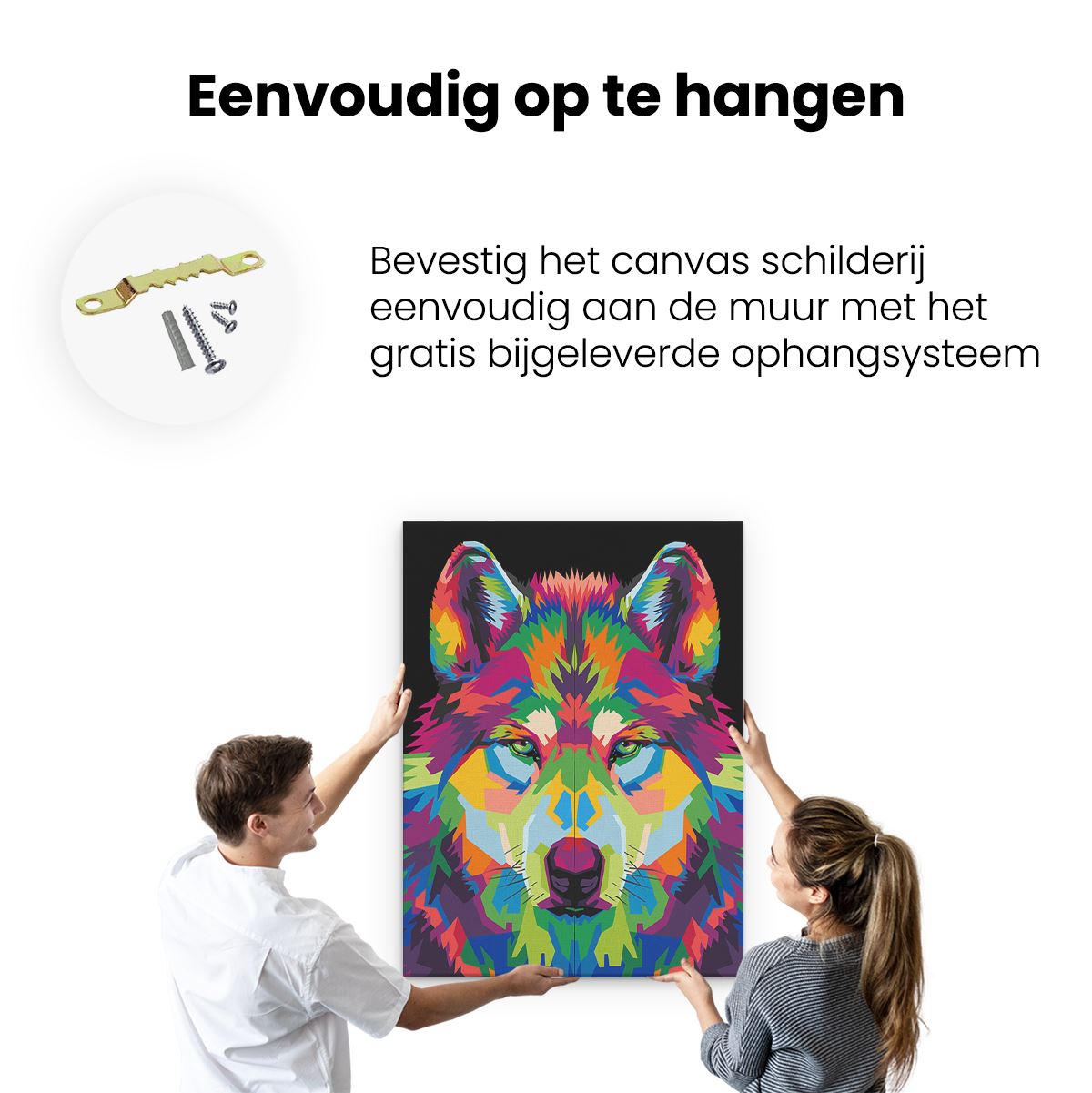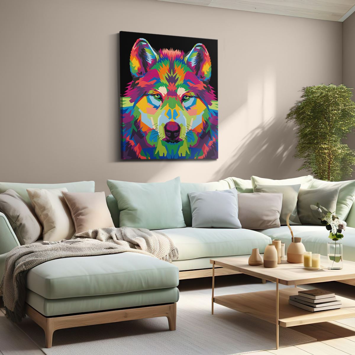Schilderij Gekleurde Wolvenkop - Wolf - Abstract