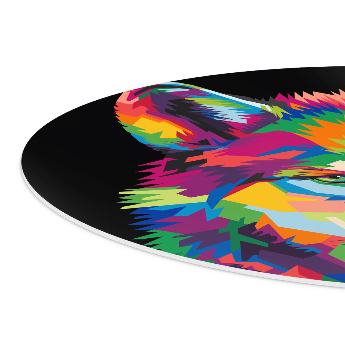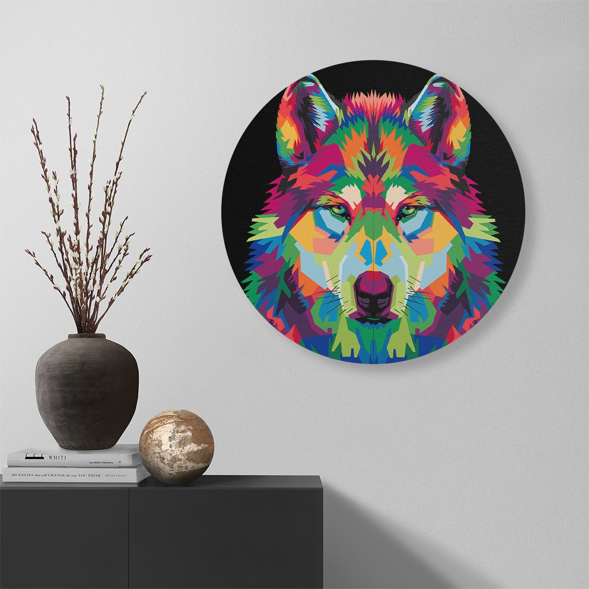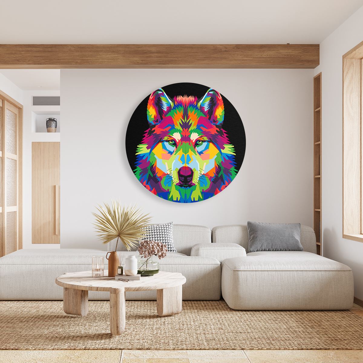 Wandcirkel Gekleurde Wolvenkop - Wolf - Abstract