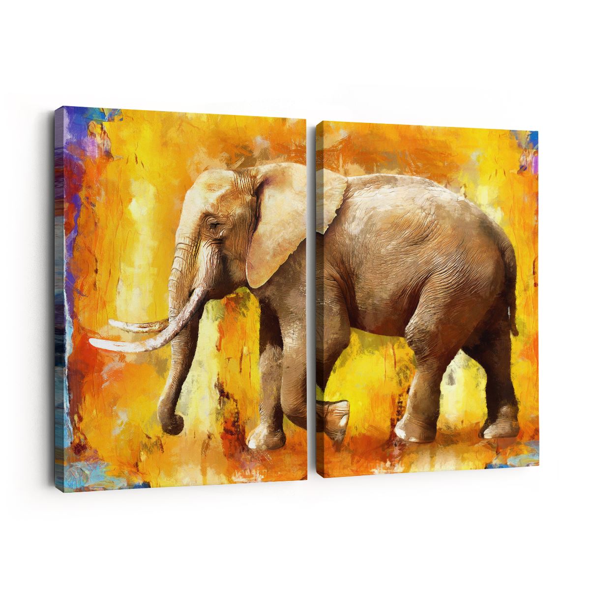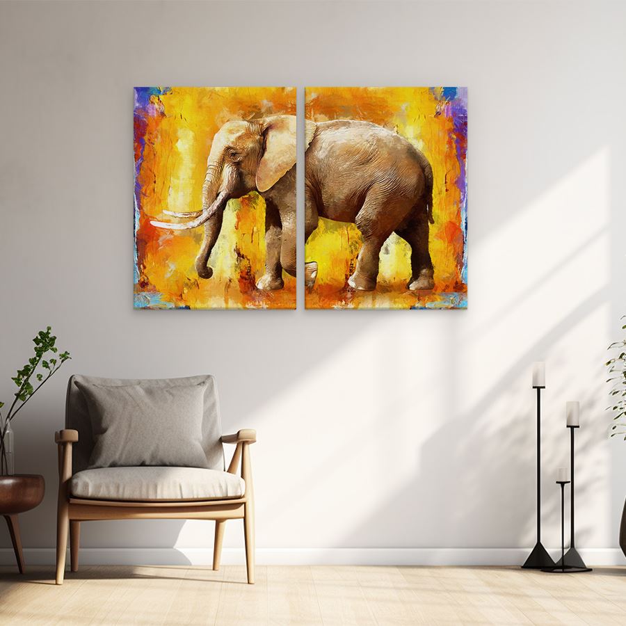 Tweeluik Geschilderde Olifant Olieverf - Abstract