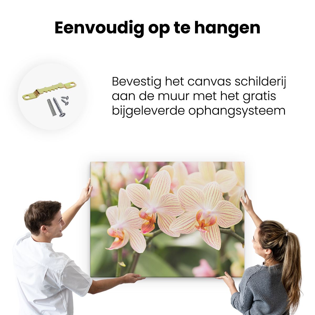 Bij aankoop ontvang je een meegeleverd ophangsysteem, zodat je op een simpele en snelle wijze het schilderij boven de bank of bed kan monteren.