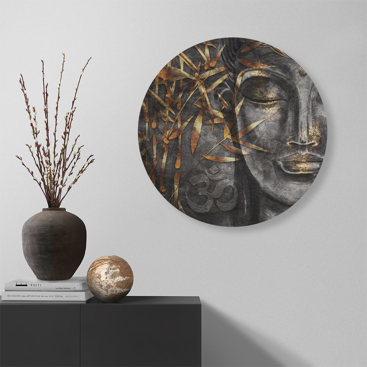 Wandcirkel Gouden Boeddha Van Aquarel - Abstract